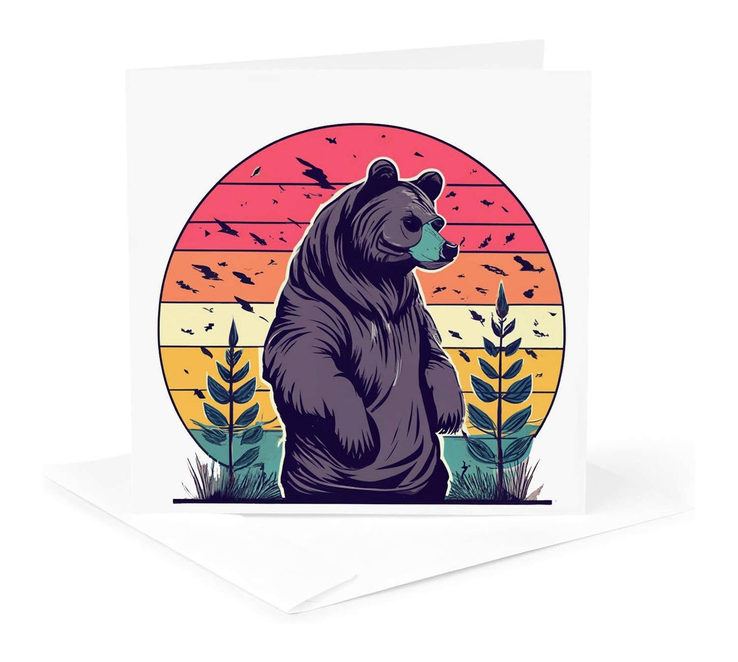 Carte de vœux unique représentant une reproduction d'un collage original en papier découpé à la main par Angie Pickman sur du papier Palm Beach White Strathmore. Intérieur vierge pour la personnalisation. Carte légèrement texturée de 5 x 6-7/8 pouces (12,7 x 17,4 cm) avec enveloppe assortie, emballée dans une pochette en plastique transparent sans acide.