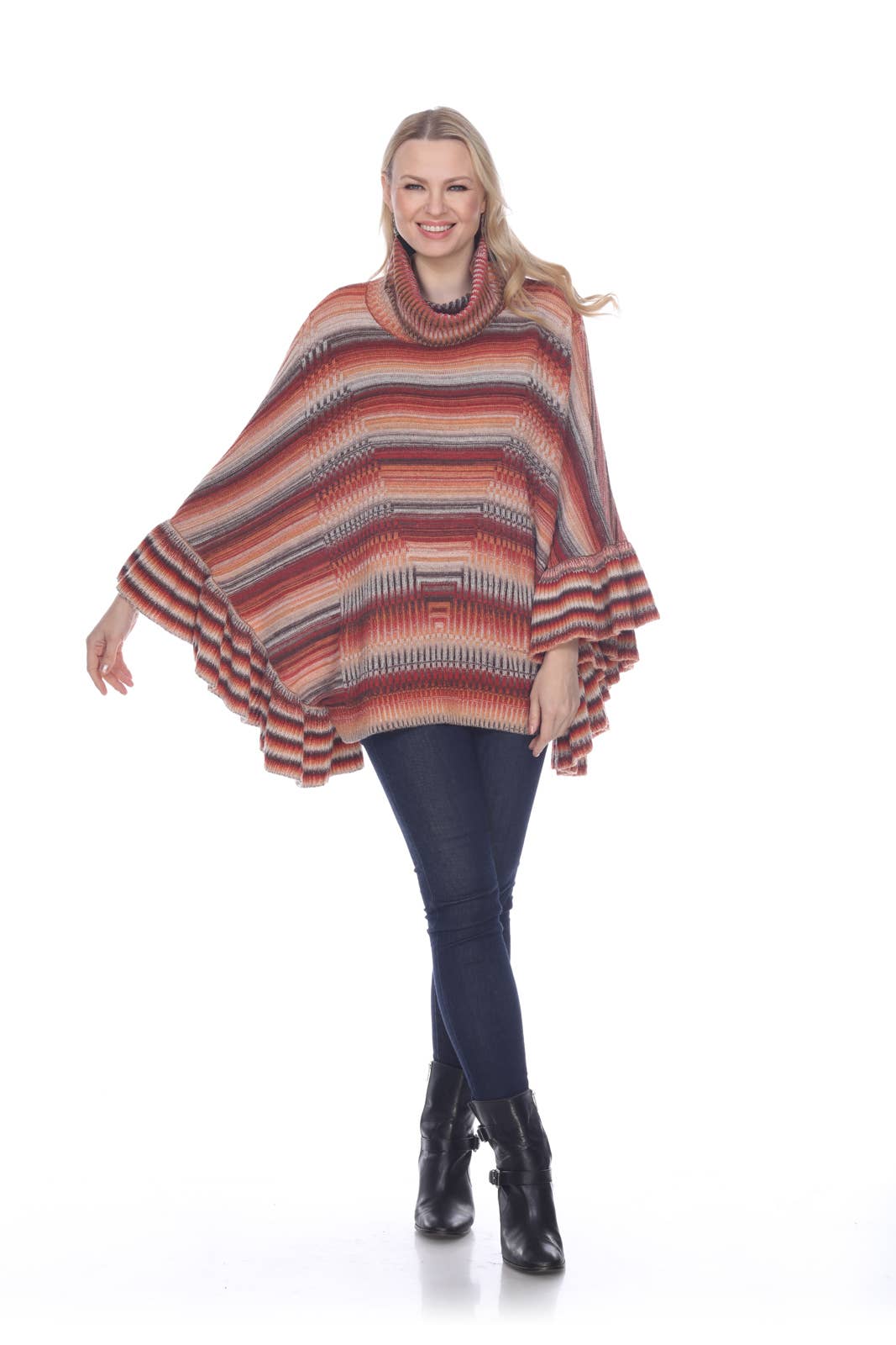 -Poncho à col roulé uni -Tissu doux, style décontracté, à porter au quotidien. -Taille du mannequin : petite (5'10" 31- 23- 34) -Fabriqué aux États-Unis