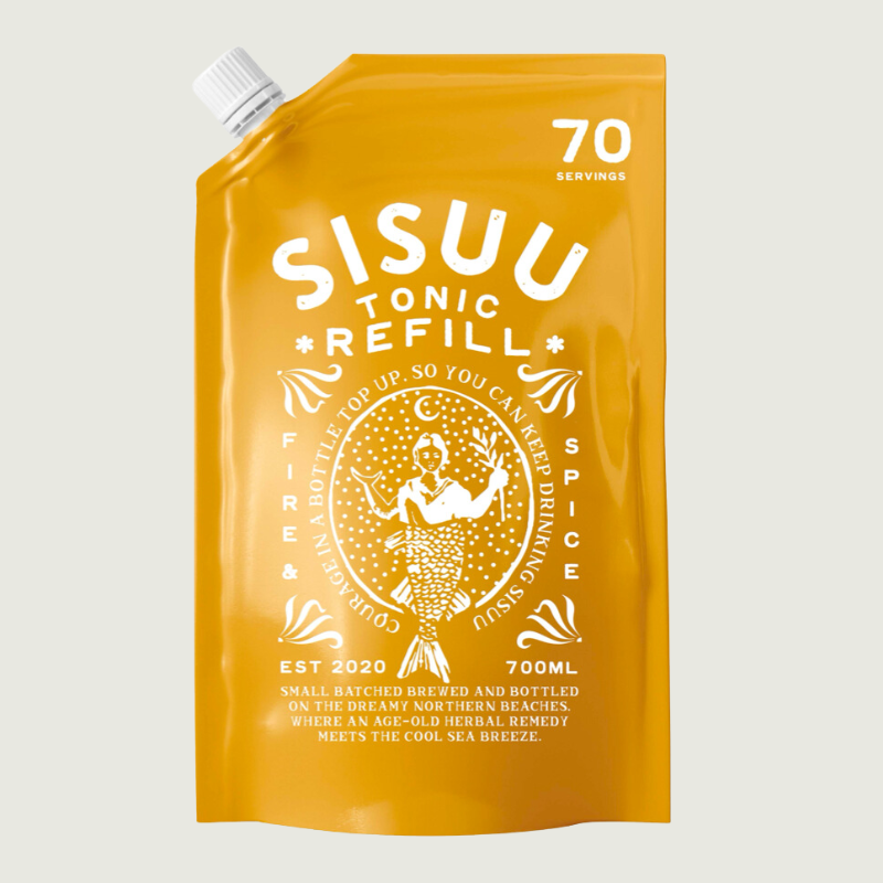 Conçu pour éveiller votre âme et votre esprit, ce petit tonique ardent est le courage en bouteille. Une recette concentrée d'herbes, d'épices, d'agrumes, de gingembre, de curcuma et de piment (nous vous avions dit qu'elle était sexy !) , le tonique SISUU vous aidera à démarrer votre journée de manière revigorée. Tire-le. Dilue-le. Préparez-le — nous recommandons 10 ml le matin, à prendre comme bon vous semble. Les effets secondaires possibles peuvent inclure : un appétit accru pour l'aventure et un désir urgent de vivre votre meilleure vie. Cet élixir immunitaire épicé et pétillant est préparé et mis en bouteille sur les plages de rêve de Sydney, en Australie, où un remède à base de plantes séculaire rencontre la brise marine fraîche. Votre dose quotidienne de courage dans un flacon. Dites-nous où cela vous mène.