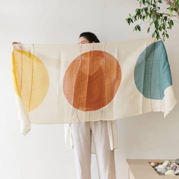 L'écharpe Shiloh est plus grande et extrêmement polyvalente. Elle peut être portée comme une écharpe classique, un paréo sur la plage, un haut style bandana, dans vos cheveux, comme un bandeau de chapeau, utilisez votre propre créativité pour faire briller cet accessoire. Les motifs sont créés avec le Shibori en ajoutant et en retirant la couleur plusieurs fois, ce qui donne des designs uniques. Détails : 40×40” Pièce unique 100% soie chiffon Fait main et teint à la main à Denver, CO Laver à la main à l'eau à température ambiante ou dans un sac à linge en filet en cycle délicat. Sécher à plat. La soie chiffon tient très bien lorsqu'elle est nouée, elle n'est pas glissante comme beaucoup d'autres types de soie, ce qui la rend idéale pour toute situation où vous avez besoin qu'elle reste en place.