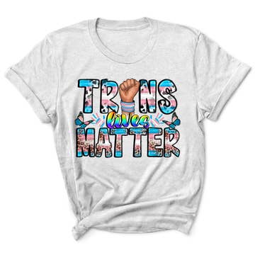 Tous les t-shirts sont fabriqués sur commande et prolongeront le délai de traitement. Conception par Rio Wolf Description de l'image : Un t-shirt noir à manches courtes avec l'inscription « Protégez les enfants trans » avec une rose et un couteau entre les lettres, le tout dans une police gothique blanche.
