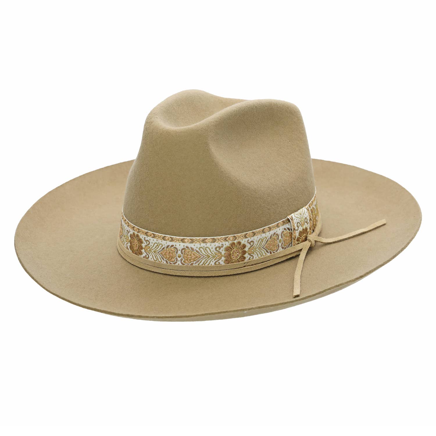Chapeau de rancher à large bord à chaîne dorée en faux daim en vente B2B