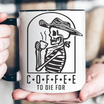 Les mugs charmants et effrontés de Prairie Chick Prints sont le complément parfait à toute collection de mugs. Ils sont parfaits pour offrir en cadeau ou pour les garder pour profiter de votre tasse de café du matin. Alors, qu'est-ce que tu attends ? Fabriqué sur commande. Pressée à chaud individuellement sur une tasse en céramique avec une charmante esthétique rustique en émail. Il est préférable de les commander par groupes de 12 pour l'expédition. Une boîte peut en contenir 36. — imprimé des deux côtés pour que tout le monde puisse en profiter — grand et magnifique format de 15 oz — lavage à la main suggéré (panier supérieur lavable au lave-vaisselle, évitez les cycles de chaleur extrême et de désinfection) — passe au micro-ondes car le réchauffage se produit;) — avec 7 couleurs pastel ainsi que ses marquages faits à la main, chacun est unique — conçu et imprimé dans mon home studio, à Sherwood Park, en Alberta Mug à sublimation au design rustique © Crystal Derouin Design Inc./Prairie Chick Prints. tasses à motifs, tasses Chippy, tasses de ferme, tasses vintage, tasses rustiques, rétro, émail, cadeaux pour amis, café du matin, tasse à thé, cadeaux fantaisie, jolies tasses, collection de tasses, squelette