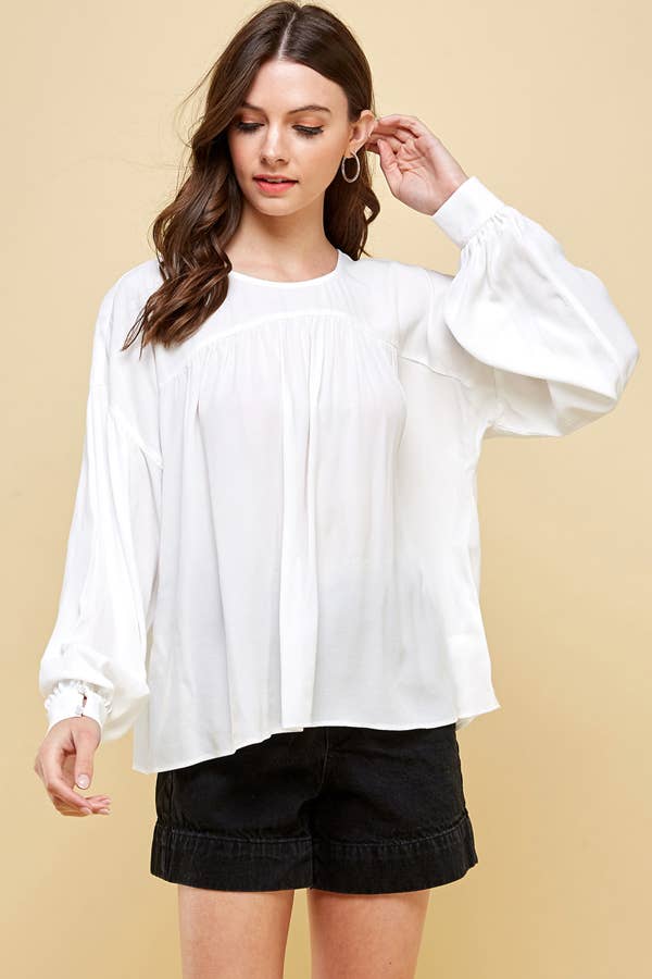 TOP À MANCHES LONGUES PAYSAN SOLIDE AVEC ENCOLURE CACHE-CŒUR ET NŒUD LATÉRAL EN VENTE B2B