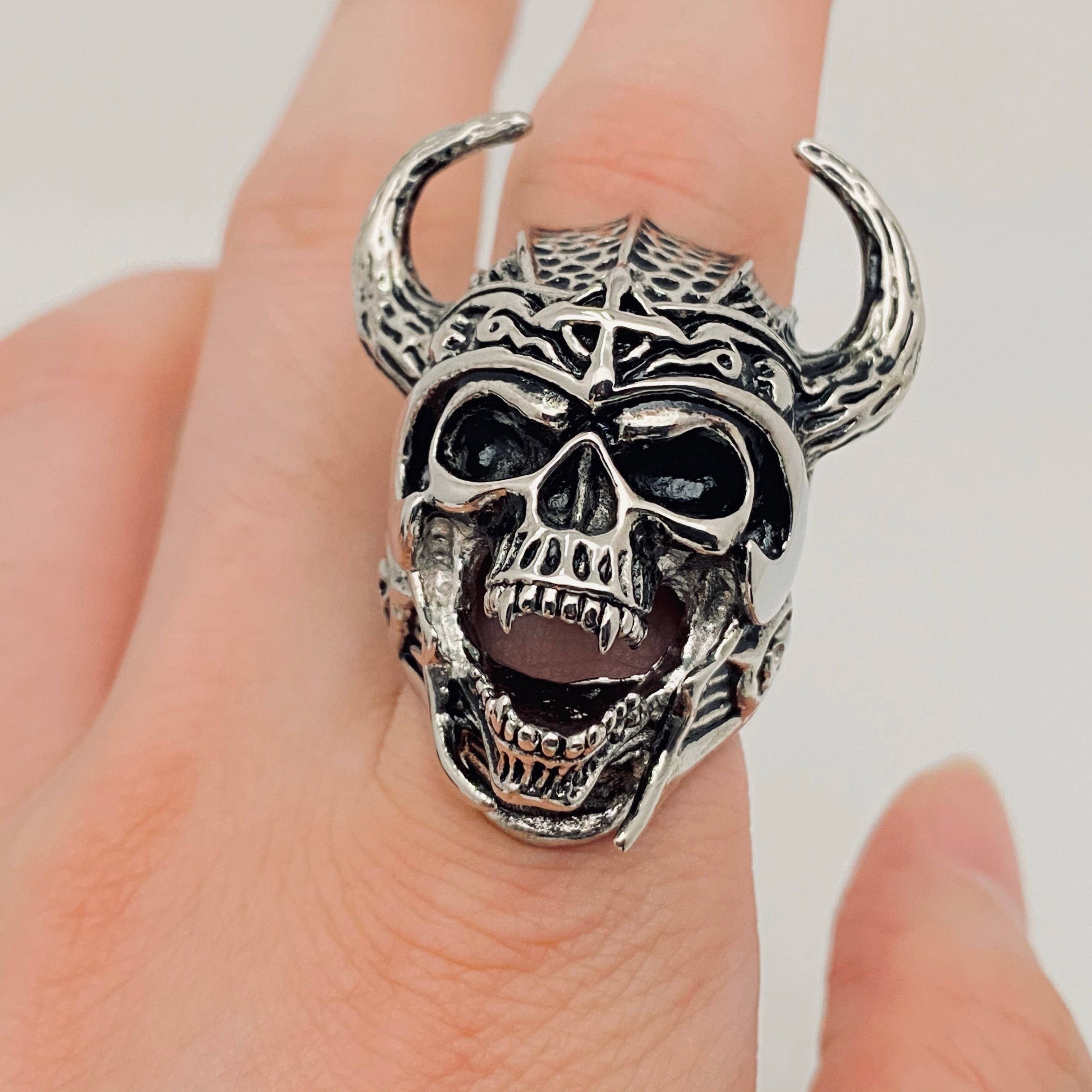 Bague en argent sterling avec tête de mort flamboyante
