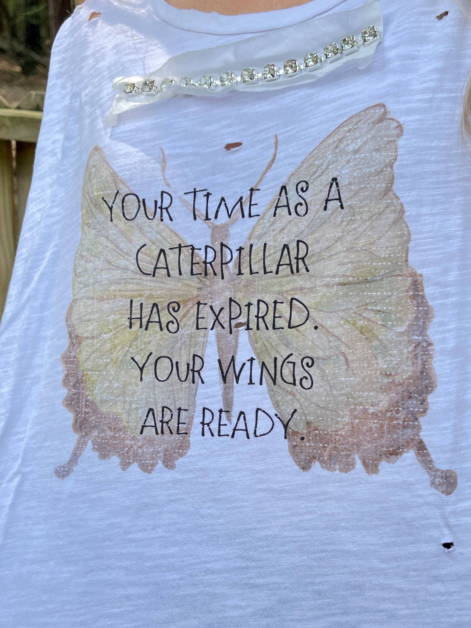 Dieu est en elle... elle ne tombera pas... Oui c'est vrai ! Cette chemise noire à manches courtes vieillie est ornée de magnifiques strass et d'une écriture imprimée douce pour vous aider à passer la journée. À porter avec tout et à porter avec n'importe quoi ! Taille S et L surdimensionnée *TOUS LES ARTICLES SONT SURDIMENSIONNÉS ET NE SONT PAS DE TAILLE STANDARD AMÉRICAINE, EN RAISON DU STYLE VINTAGE SHABBY CHIC DANS LEQUEL ILS SONT CONÇUS*
