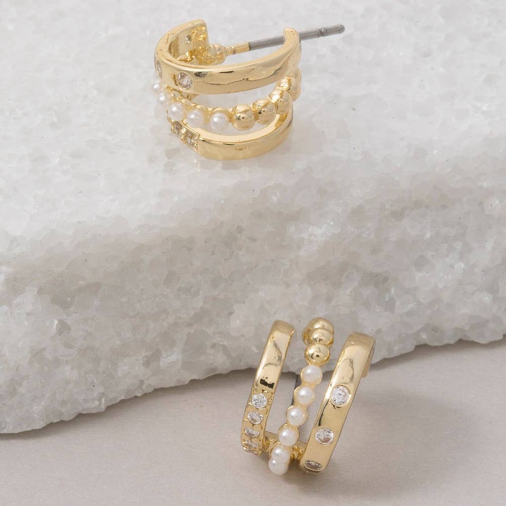 Perle en forme de C ornée de perles artificielles de 15 mm remplie d'or 18 carats