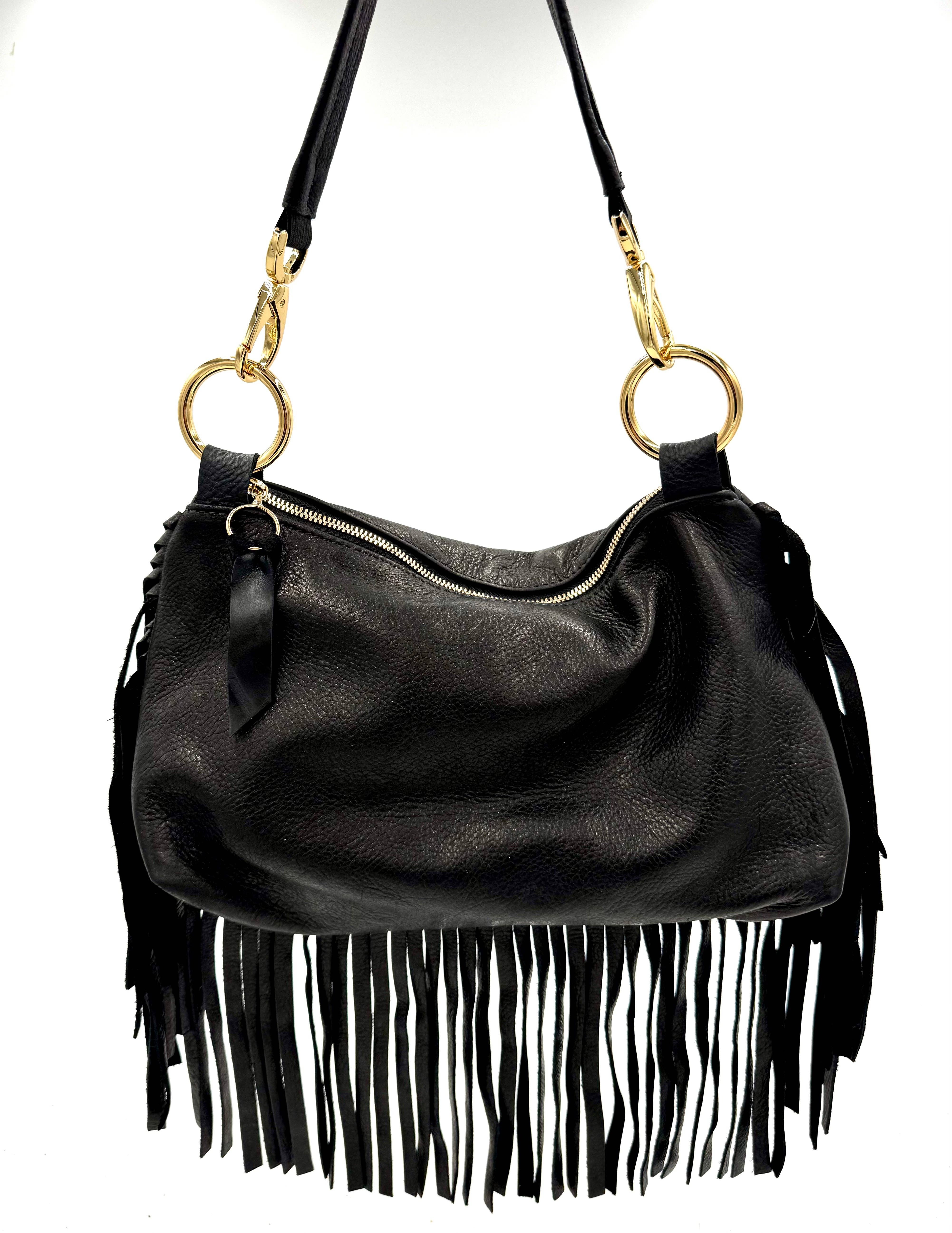 Laissez libre cours à votre esprit de liberté intérieure avec notre sac à franges Easy Rider de style bohème de minuit. Cette merveille de fabrication népalaise de 15 pouces x 13 pouces associe un coton noir élégant à des franges avant-gardistes en similicuir pour un look boho-chic saisissant. Des clous en laiton ornent le rabat avant d'un motif en V accrocheur, ajoutant une touche de glamour rebelle. Une petite poche à pression ornée de délicats détails en dentelle et une plus grande poche dissimulée offrent des options de rangement polyvalentes. Le compartiment principal spacieux, sécurisé par une fermeture à glissière, permet de ranger vos essentiels en toute sécurité. Une sangle ajustable garantit un transport confortable pour tous. Parfait pour les festivals de musique, les marchés nocturnes ou pour ajouter une touche bohème à n'importe quelle tenue. Ce sac unique allie parfaitement praticité et style libre, ce qui en fait le compagnon idéal pour vos aventures urbaines ou vos promenades au clair de lune.