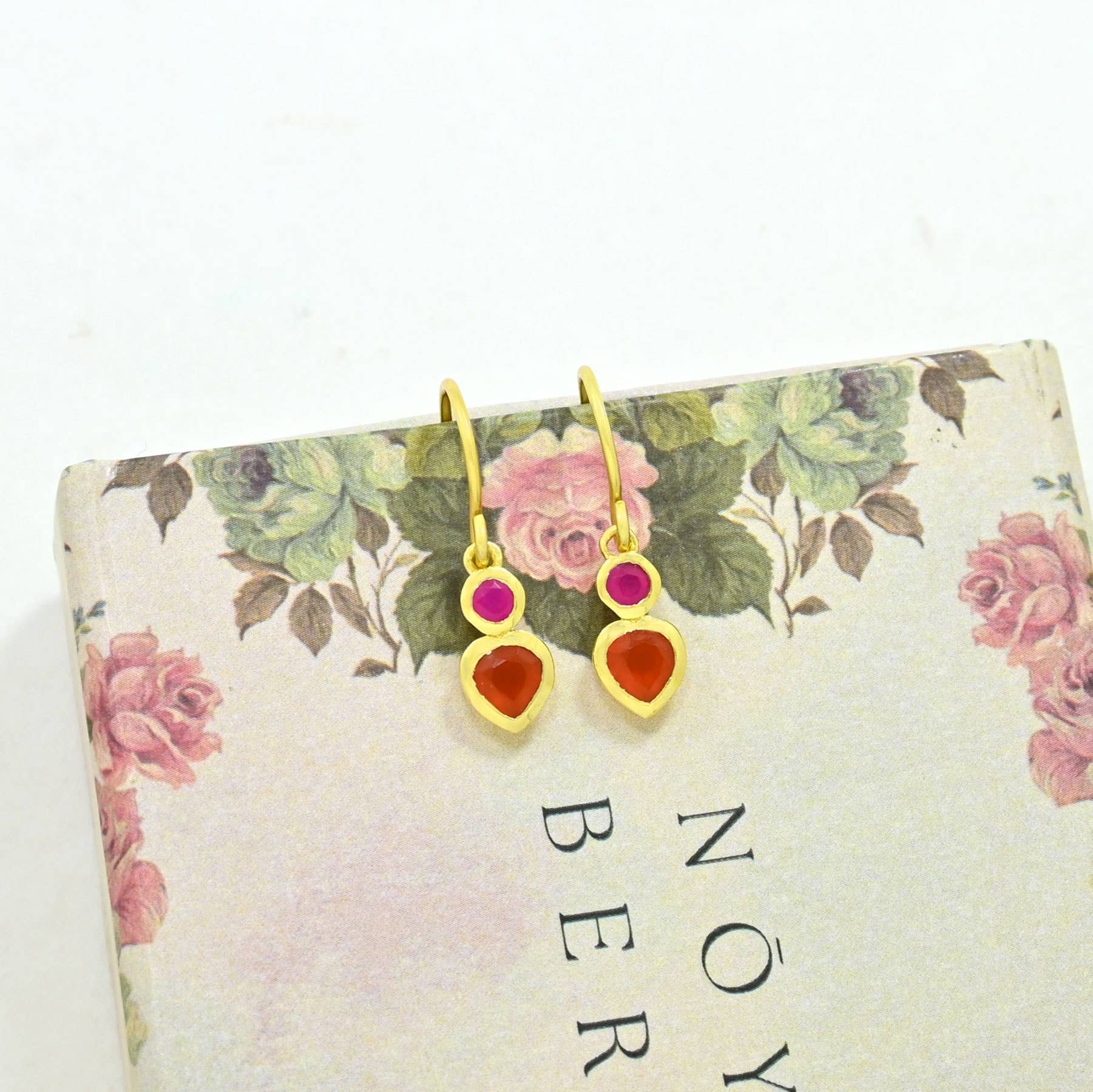 Boucle d'oreille Kate dorée - Onyx rose fuchsia et cornaline orange