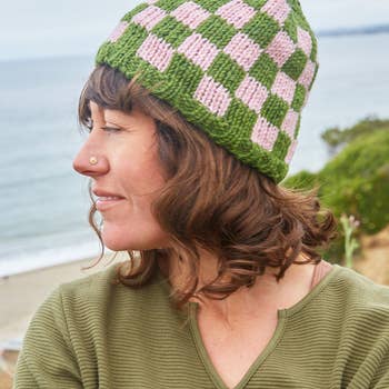 Chapeau en carrés de grand-mère au crochet en coton, doublé en polaire en vente B2B