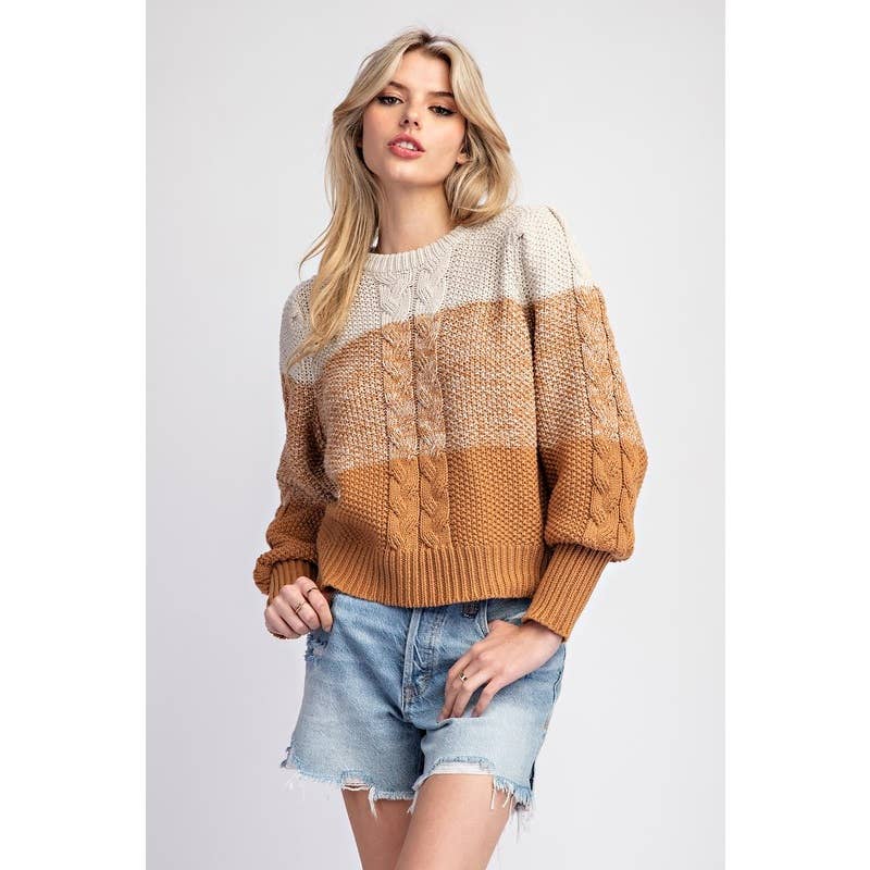 Tunique boutonnée surdimensionnée côtelée à blocs de couleurs T1578-2D