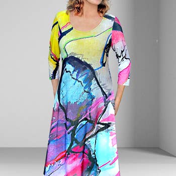 Faites tourner les têtes avec cette robe tunique vibrante et élégante, conçue pour apporter une touche artistique à votre garde-robe quotidienne. Arborant un imprimé abstrait audacieux dans des tons riches de fuchsia, moutarde, prune et magenta, cette robe allie design moderne et confort tout au long de la journée. Confectionnée dans un tissu tricoté doux avec une légère élasticité, elle offre une silhouette flatteuse en ligne A et un ajustement confortable qui suit vos mouvements. Les longues manches charbon offrent un contraste élégant, tandis que l'encolure dégagée maintient un look sans effort et polyvalent. Parfaite pour le travail, les sorties du week-end ou les voyages, cette robe facile à enfiler se marie magnifiquement avec des bottes, des talons ou des collants. Que vous la portiez de manière élégante ou décontractée, cette tunique est votre pièce incontournable pour un style audacieux et confiant. Détails : Couleur : Charbon avec imprimé abstrait multicolore Tissu tricoté doux et extensible Manches longues Encolure dégagée Au-dessus du genou Style à enfiler Coupe & Entretien : Coupe décontractée en ligne A Lavable en machine Taille conforme Ajoutez une touche de couleur à votre garde-robe—