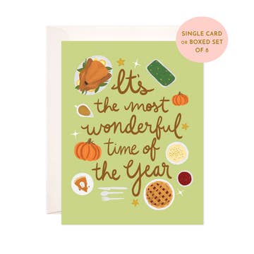 Servez un peu de gratitude pour Thanksgiving à côté de votre purée de pommes de terre. • Carte et enveloppe au format A2 (4,25 x 5,5 pouces) • Carte pliée, intérieur vierge • Imprimé en couleur sur du papier cartonné crème de 110 lb • Conçu et imprimé aux États-Unis
