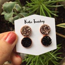 Clous d'oreilles trio en or associés à un bol en agate mousse pour "Flourish". Un magnifique cadeau pour les anniversaires, les diplômes, les enseignants, les adolescents, les fêtes et plus encore ! Clous en acier inoxydable plaqué or 18k de 3 mm Bol en pierre précieuse de 2,4" de diamètre Bande de papier certifiée FSC Dirigée par des femmes à Asheville, NC depuis 2011, SoulKu propose des bijoux en pierres précieuses authentiques et des cadeaux faits à la main par notre équipe de mamans créatrices. Le cadeau parfait pour les anniversaires, la Saint-Valentin, Pâques, la fête des mères, les fêtes et plus encore—faites le plein de SoulKu cette saison !