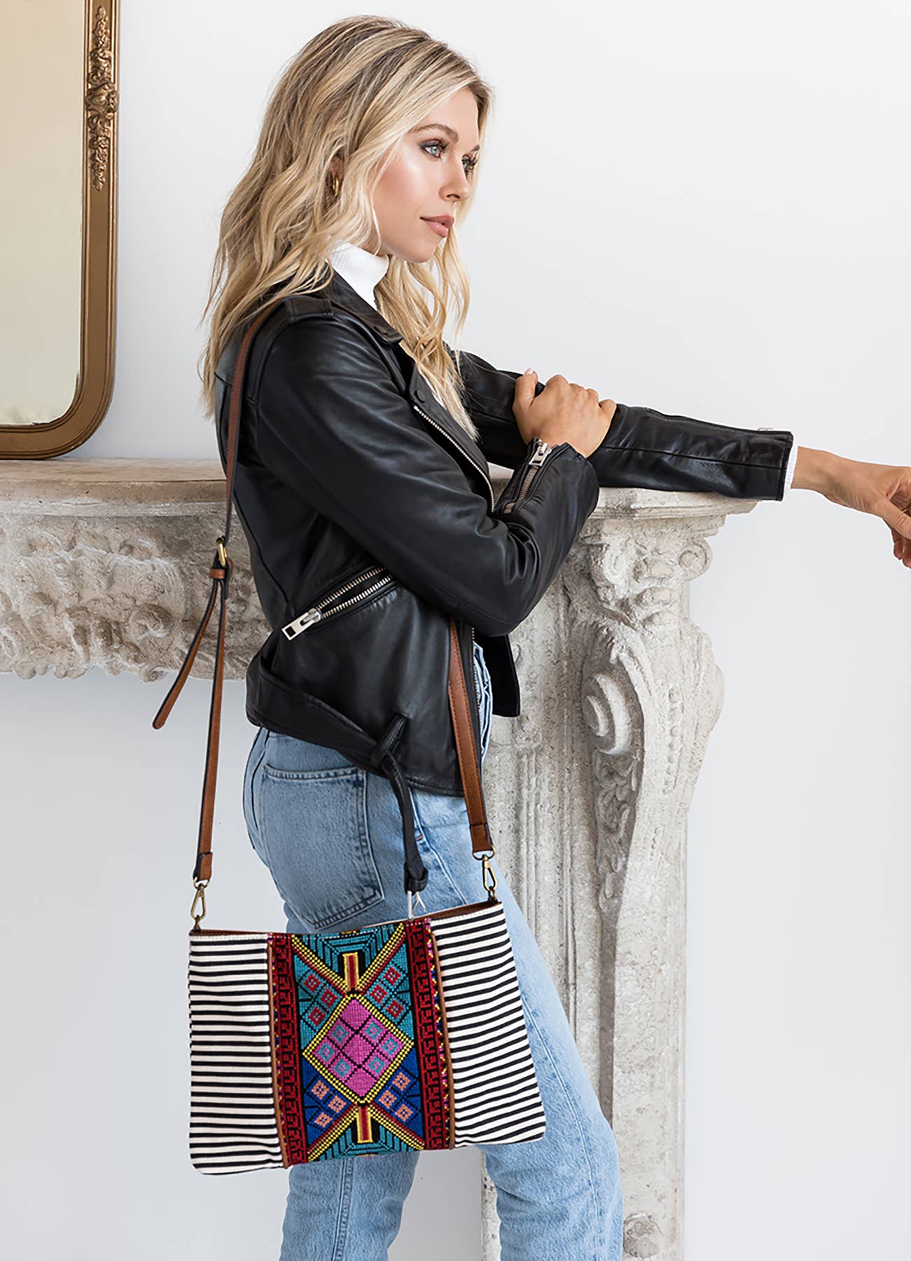 Sac à bandoulière aztèque crème et noir