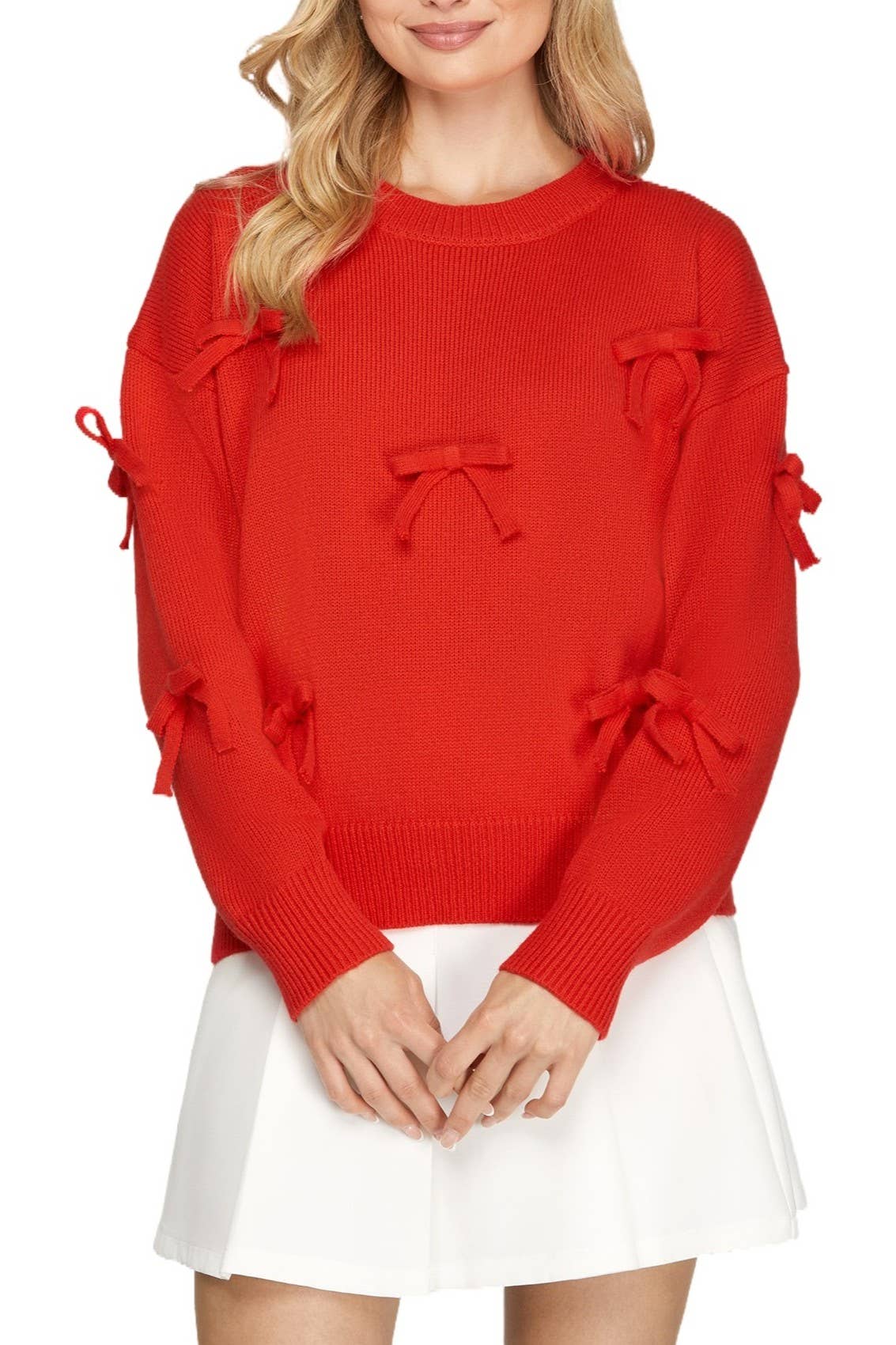 Pull à manches courtes en maille torsadée avec nœud en satin