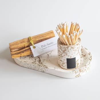 Le Cylindre + Ensemble de Récupération d'Allumettes Petit par la taille, grand par la fonction et le charme. Rose + Brique Découvrez Le Cylindre—notre porte-allumettes amélioré conçu pour contenir des allumettes de 3" avec une feuille de frappe solide pour un allumage plus facile. Il est livré avec environ 30 allumettes incluses. Associé à notre Récupérateur d'Allumettes, un petit vide-poche parfaitement imparfait conçu pour contenir des allumettes usagées, des bagues, des pièces de monnaie ou de petits trésors. Stylisez-le seul ou empilez-en plusieurs pour créer votre propre palette de couleurs. Chaque pièce est fabriquée à la main à Nashville en petites séries en utilisant du béton. De légères variations de couleur et de petites bulles d'air font partie de la beauté—aucun n'est exactement identique. Comprend : Porte-Allumettes Cylindre Allumettes de 3" Récupérateur d'Allumettes Rappel de sécurité : Les allumettes sont inflammables—frottez-les loin de votre corps et des matériaux inflammables. Gardez hors de portée des enfants et des animaux de compagnie.