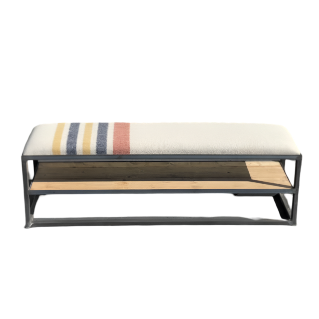 Banc en bois massif naturel et noir de 66" avec bordure vive en vente B2B