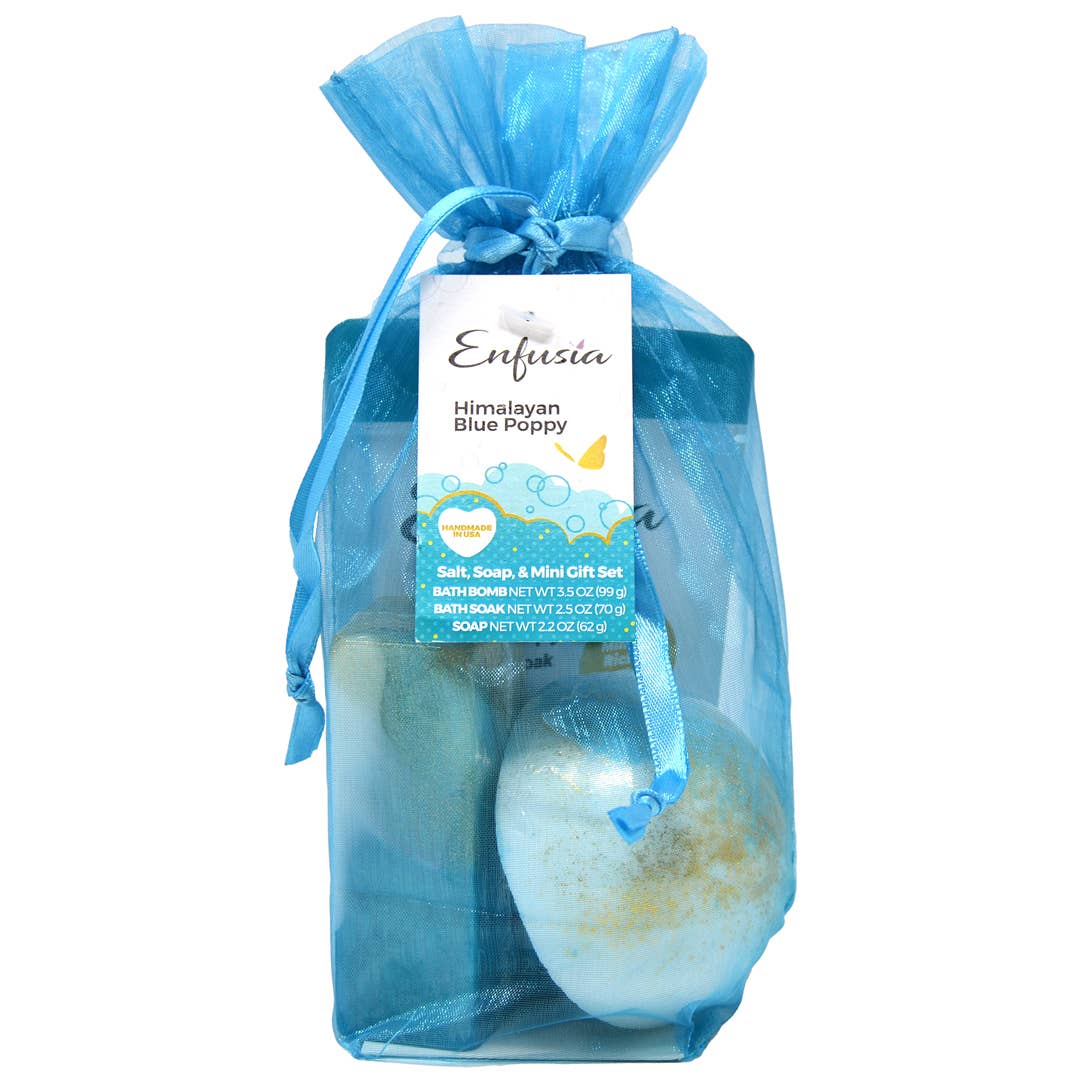 Détente et Repos : Votre Évasion Spa Eucalyptus Lavande ! Prêt à dissiper le stress de la journée et à inviter le calme pur dans votre soirée ? Notre collection Eucalyptus Lavande est votre secret pour créer un spa luxueux à la maison. Nous avons mélangé de l'Eucalyptus pur, de la Lavande apaisante, et juste une touche de Patchouli pour une profondeur subtile, créant des arômes qui vous aideront à vous détendre, vous relaxer et trouver votre centre de paix. Ce parfum serein est absolument merveilleux avant le coucher pour favoriser un sommeil véritablement réparateur. Le Coffret Cadeau Sel, Savon & Mini : Votre Trio pour la Tranquillité Découvrez le summum du luxe à l'heure du bain avec notre Coffret Cadeau Sel, Savon & Mini. C'est la façon parfaite de transformer n'importe quel bain en une belle évasion sensorielle avec trois délices différents : Le Coffret Cadeau Luxe Abordable d'Enfusia Comprend : 1 Mini Bombe de Bain (100 g) 1 Savon Artisanal Premium (62 g) 1 Bain de Sel Spa (70 g) Poids net 246 g