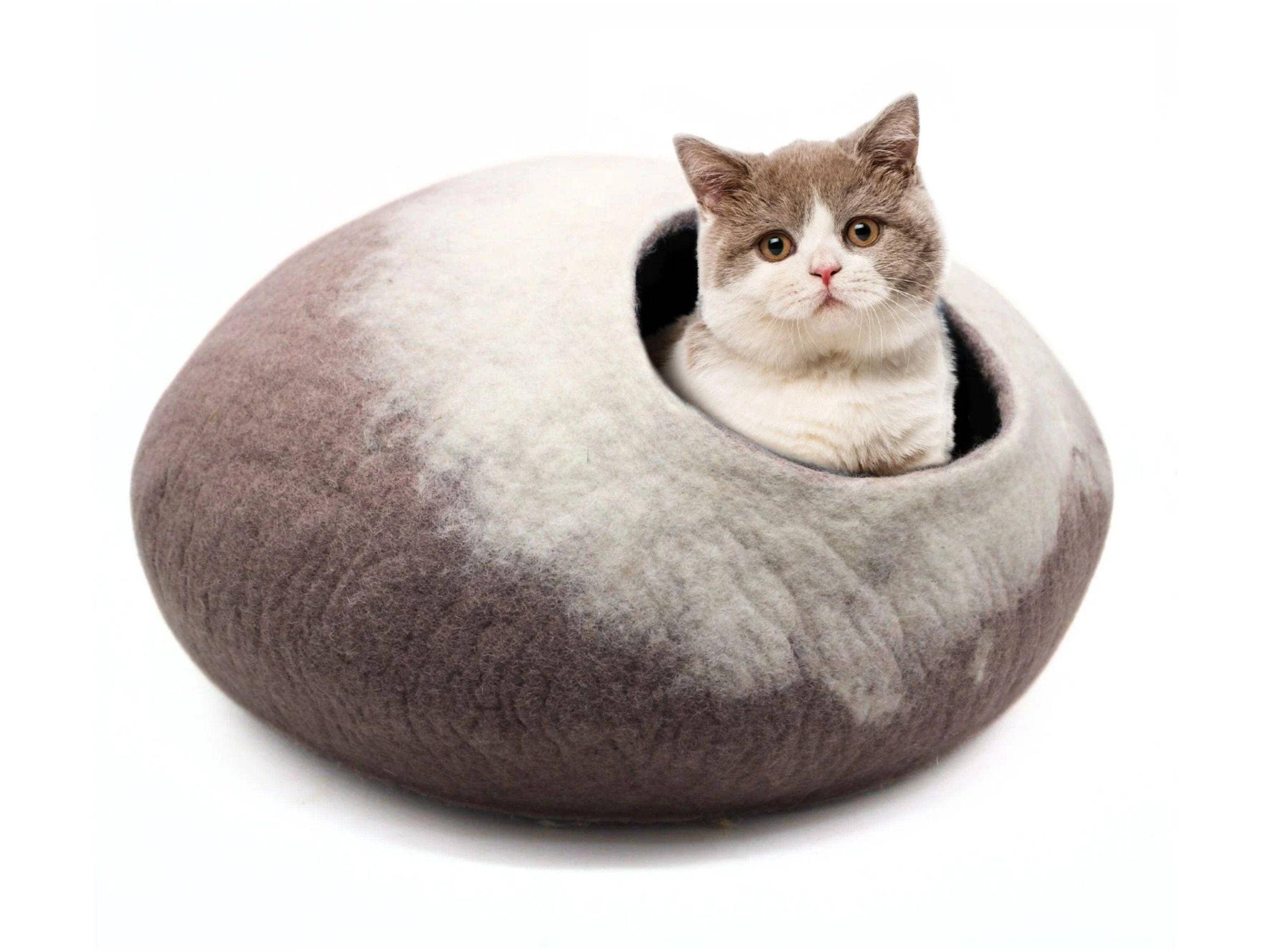 Cachette pour chat en laine feutrée faite à la main / Lit chaud pour chat / Maison douillette pour chat