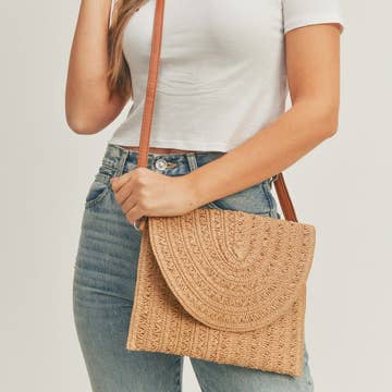 Sac circulaire en osier au crochet orné de coquillages en vente B2B