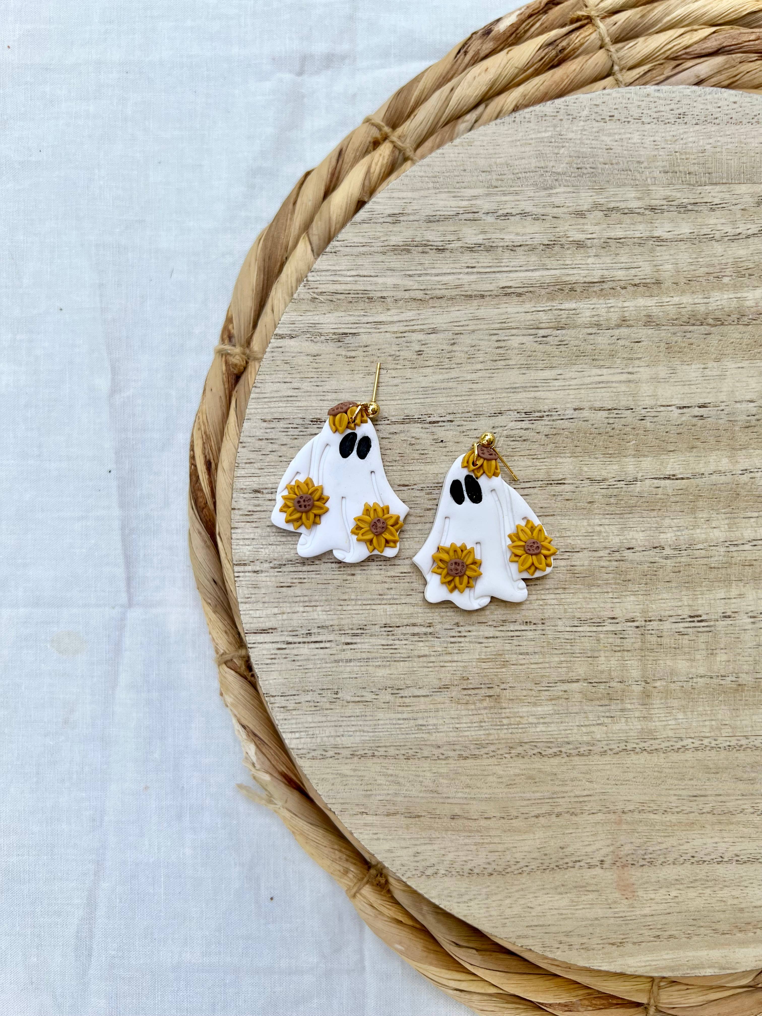 Boucles d’oreilles fantôme floral en acrylique pour Halloween