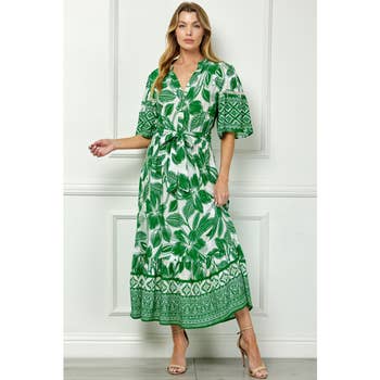 Robe midi fendue à manches courtes et ceinture à fleurs Plus en vente B2B
