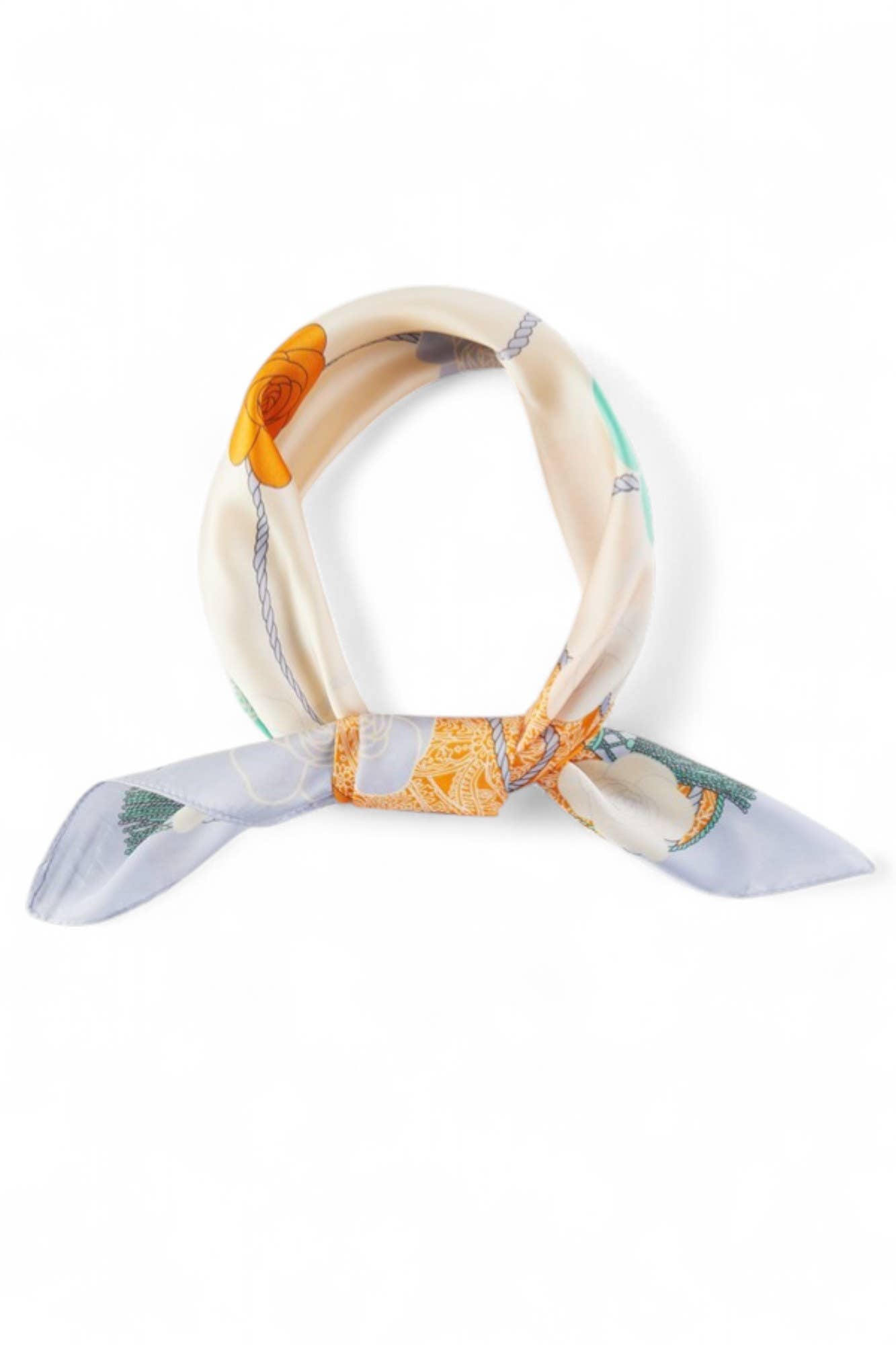 Foulard carré à imprimé chaîne équestre – Foulard carré en texture soie pour un style élégant Ajoutez une touche de sophistication à votre tenue avec ce foulard carré inspiré de l'équitation, orné d'un imprimé élégant de chaînes, cordes et pompons. Confectionné en polyester de haute qualité avec une texture semblable à la soie, ce foulard offre une sensation luxueuse tout en étant léger et facile à entretenir. La palette de couleurs riches et les détails complexes en font un accessoire de choix pour des looks à la fois décontractés et formels.