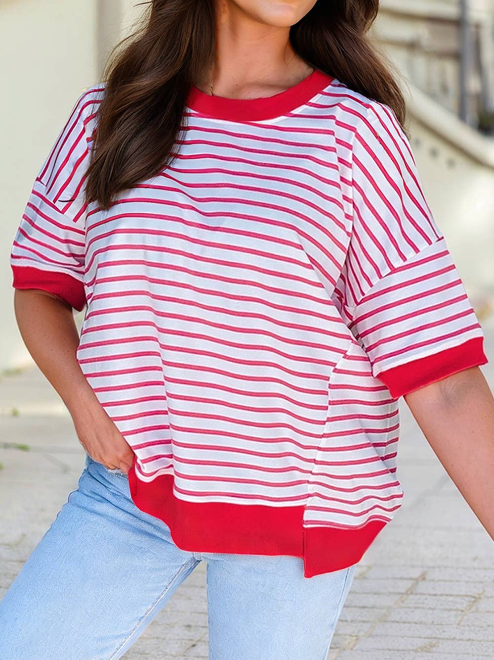 Top Brodé à Manches 3/4 – Finitions Dentelle & Détails Floraux Contrastés Réf. : YS508 Vendu par lot de 6 pièces : TU Ce top à manches 3/4 conjugue élégance et confort avec une coupe fluide rehaussée de broderies florales contrastées. Sa silhouette droite et ses finitions festonnées en font une pièce idéale pour composer un look raffiné au quotidien. Encolure : ronde avec bordure brodée délicate Manches : 3/4 droites, finies par une frise brodée Coupe : ample et fluide, idéale pour toutes les morphologies Détails : broderies contrastées placées sur le devant, les manches et le bas du vêtement, finitions festonnées travaillées Style : à associer avec un pantalon clair ou un jean pour un look estival chic et confortable Un top intemporel qui séduira une clientèle en quête de féminité, de détails soignés et de pièces faciles à porter en toutes occasions.