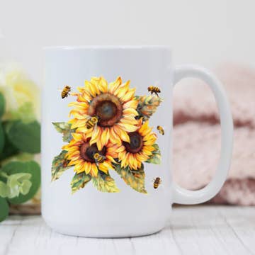 Tasse en céramique Whimsical Sunflower 15 oz en vente B2B