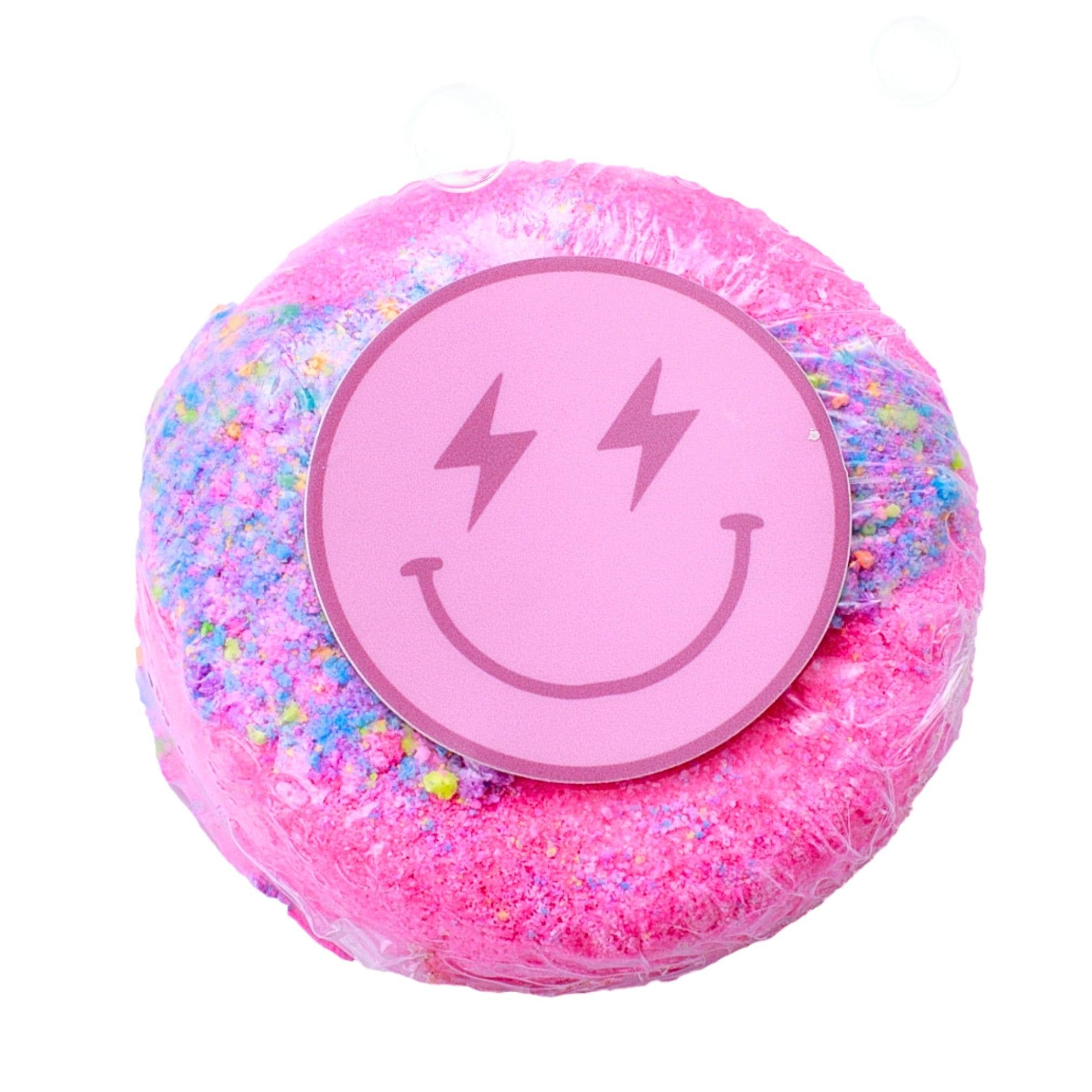 C'est une bombe de bain et un autocollant pour bouteille d'eau tout en un. Choisissez votre couleur préférée ou les 4. Chaque bombe de bain faite à la main est parfaitement assortie à un autocollant Preppy Face correspondant. Les autocollants sont étanches et peuvent être appliqués sur des bouteilles d'eau, des dossiers ou échangés avec des amis. Fabriqué avec des ingrédients naturels. Pressée à la main avec du beurre de karité et du sel d'Epsom, chaque bombe de bain en forme de donut est emballée avec un autocollant Preppy dans un film rétractable scellé et chauffé. Le glaçage et la couleur du donut peuvent légèrement varier.