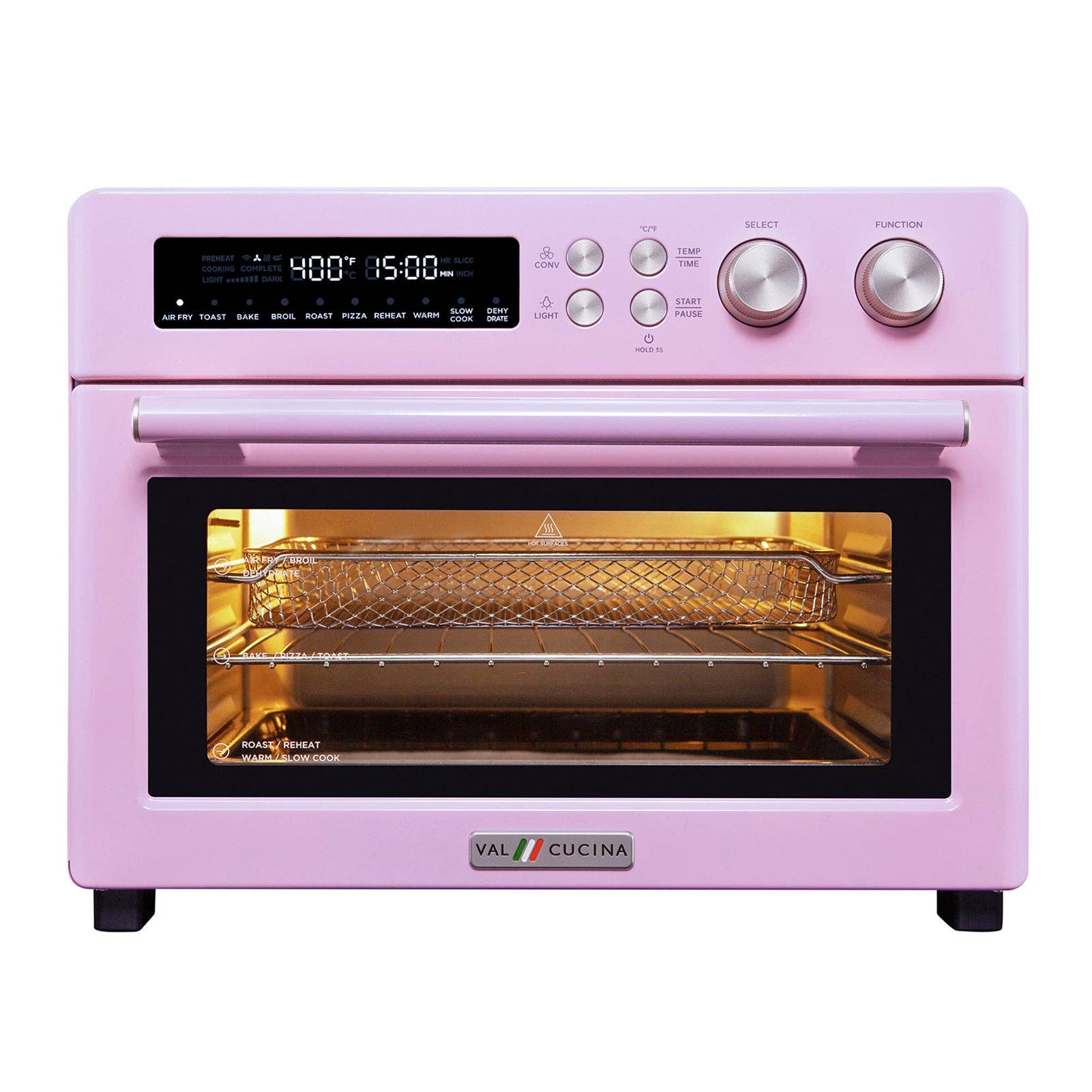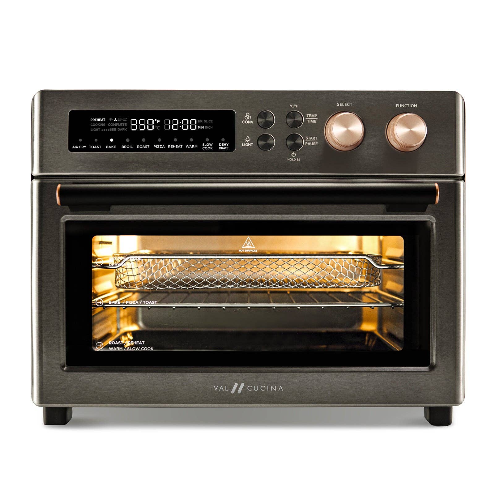 * 10 FONCTIONS PRÉDÉFINIES : Comparé à la « fonction unique » des friteuses à air traditionnelles, le four grille-pain offre 10 fonctions numériques prédéfinies : frire à l'air, griller, rôtir, cuire au four, réchauffer, cuire au four, réchauffer, cuire lentement et déshydrater, le tout dans un seul appareil puissant de 1750 watts. La plage de température de 85 °F à 450 °F vous permet de profiter d'un large éventail de fonctions de cuisson. Même les personnes qui n'ont aucune expérience culinaire peuvent désormais préparer de délicieux repas. * CUISSON RAPIDE ET SÛRE : 1750 W de puissance avec 6 éléments chauffants, la friteuse à air VAL CUCINE cuit 40 % plus vite. Grâce à la convection circulante à 360°, vos aliments sont cuits uniformément de tous les côtés, humides et croustillants comme les bons aliments doivent l'être. L'éclairage intégré du four vous permet de voir à l'intérieur lorsque vous cuisinez.