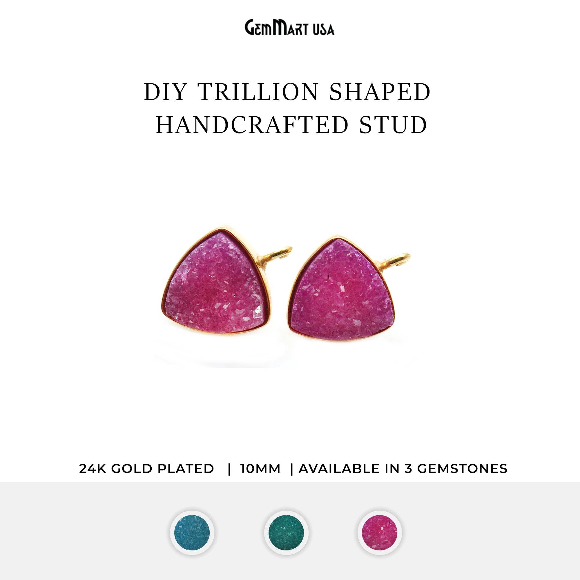 Créer des bijoux n'a jamais été aussi facile ni aussi amusant qu'avec ces connecteurs de boucles d'oreilles à tige bio DIY. Maintenant, vos créations sont aussi simples que 1, 2, 3 ! Caractéristiques Pierre : Geode Druzy Forme : Organic Métal : plaqué or 22 carats Taille : 16 x 24 mm (Appx) Caution : Unique Qté : 1 paire Clous faits main.
