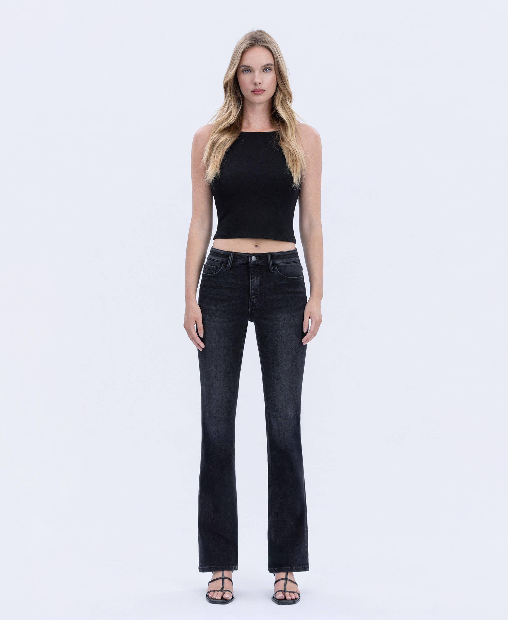 Jean court évasé à taille moyenne