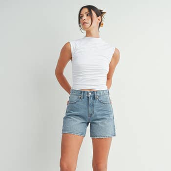 Bermuda en jean taille haute en vente B2B