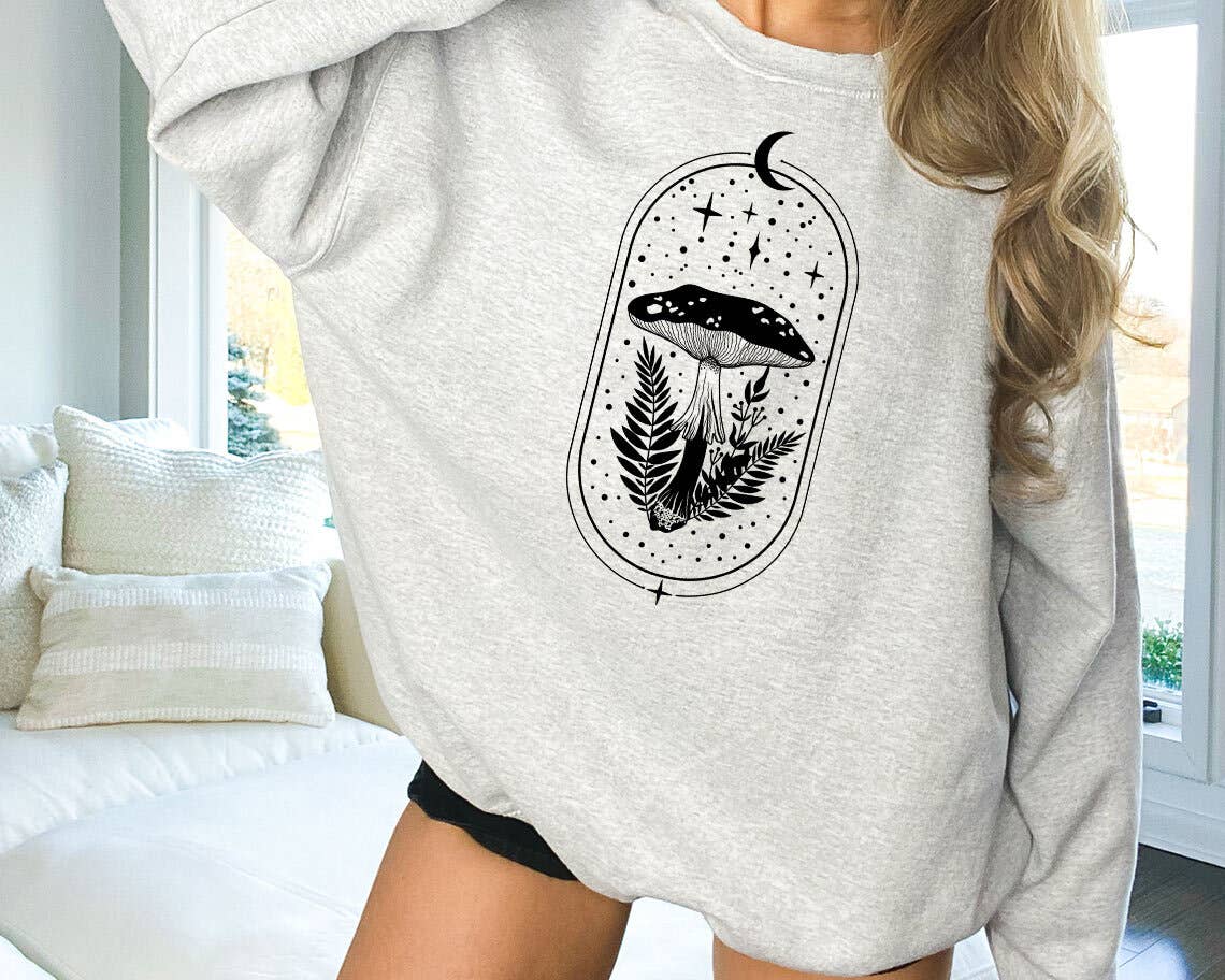 Découvrez le mélange parfait de confort et de style avec notre sweat-shirt grande taille à imprimé champignon de LA Soul. Fabriqué à partir d'un mélange douillet de 65 % coton et 35 % polyester, ce sweat-shirt est conçu pour vous garder au chaud. Il arbore un imprimé de champignons noir et blanc unique, inspiré par l'amour de LA Soul pour la nature et les designs vintage. Ce sweat-shirt, qui fait partie de notre collection de vêtements pour femmes, n'est pas simplement un vêtement mais une célébration de l'individualité et de la mode contemporaine.