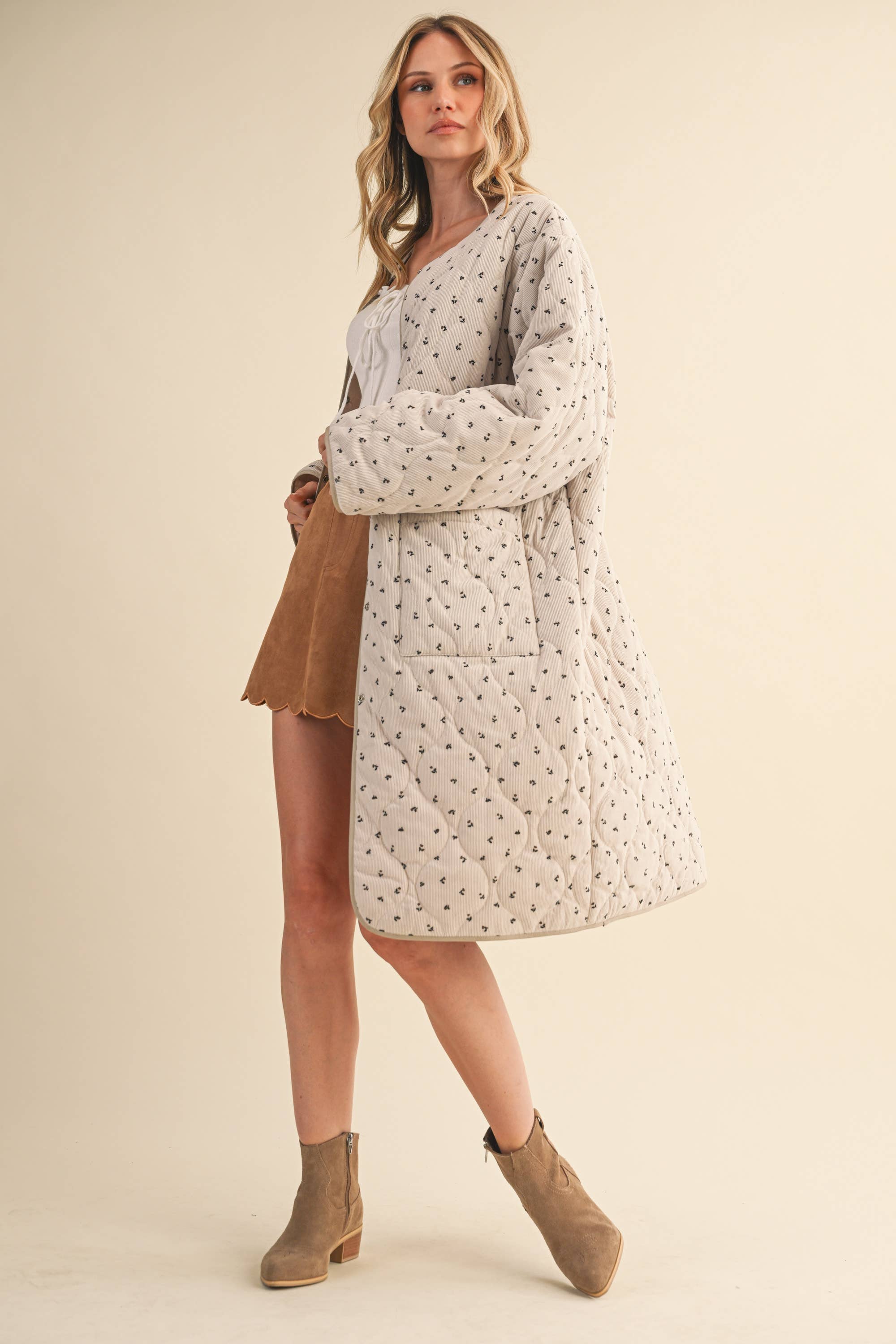 Manteau souple en laine d'agneau à fleurs contrastantes à la mode