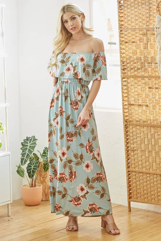 Cette robe fleurie de longueur maxi dégage charme et élégance., Elle présente une taille haute froncée pour une silhouette flatteuse., L'encolure carrée et les manches courtes bouffantes ajoutent une touche féminine supplémentaire., Confectionnée dans un tissu doux et respirant, fluide et confortable. Matière : 100 % polyester