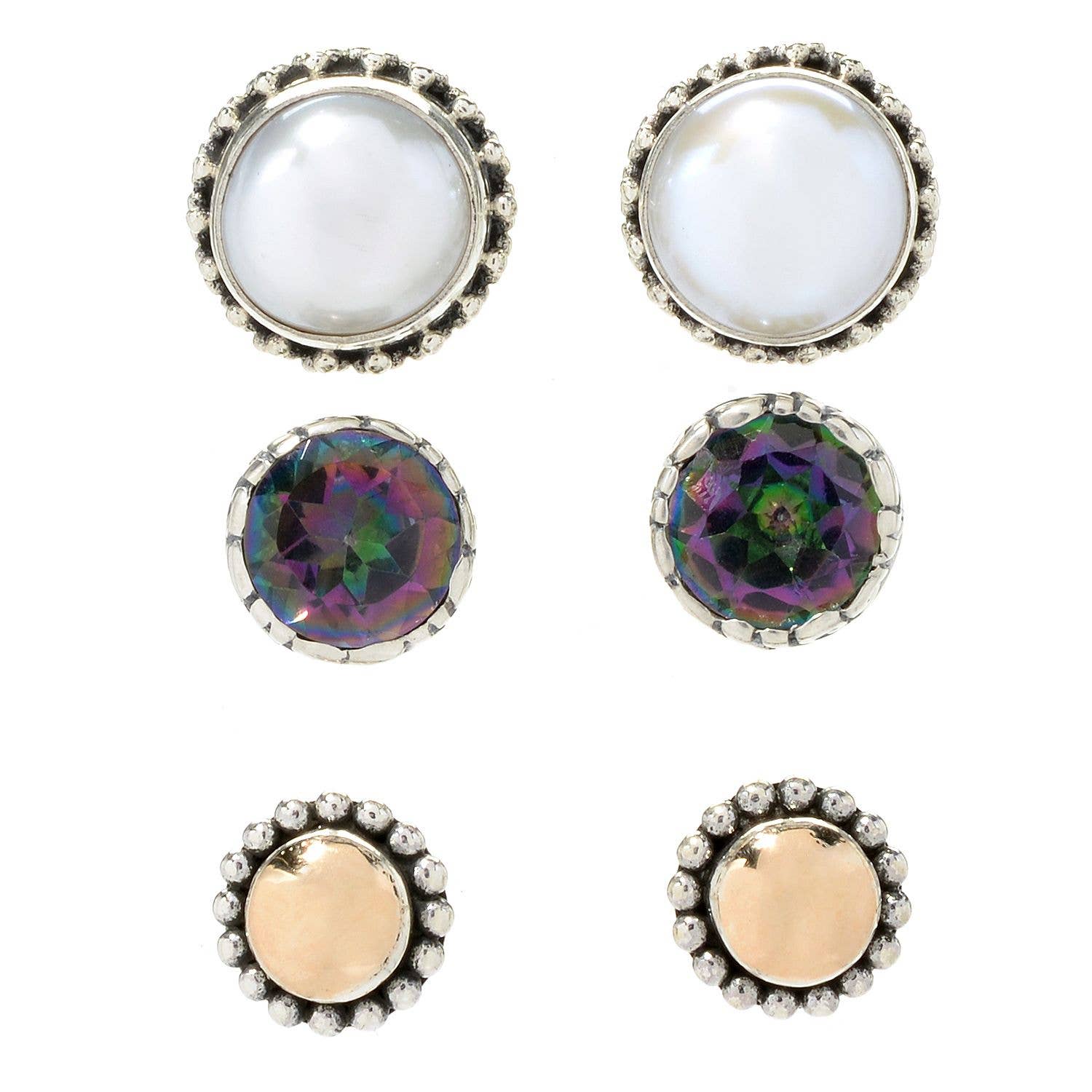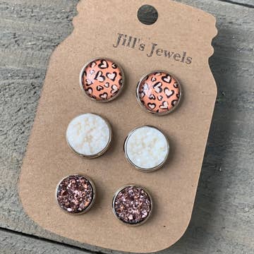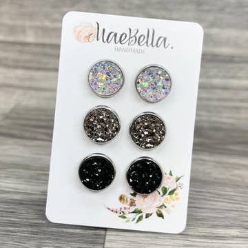 Lot de 3 boucles d'oreilles à tige Druzy Neutrals AB/GM/BL