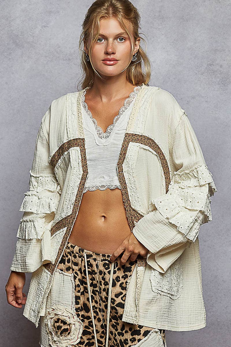 Haut tissé à manches longues en double gaze avec patch crocheté cardigan en vente B2B
