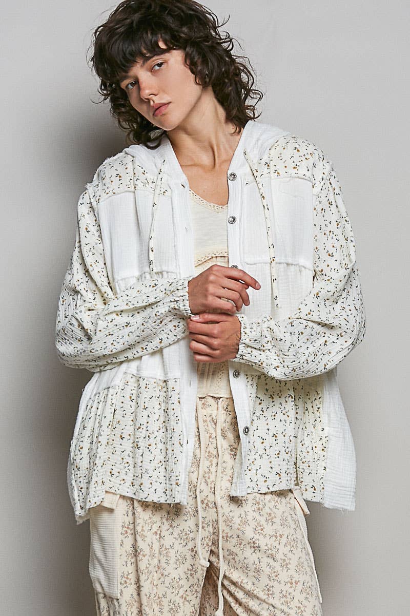 Conçu en haut de cardigan à manches longues avec encolure en V, coupe décontractée en double gaze avec empiècement en crochet, imprimé et empiècement en dentelle, point de reliure imprimé, lavage normal, couleur unie. Spécifications/Dimensions : - BUSTE : 27-4/1" - LONGUEUR (Devant) : 25" - LONGUEUR (Dos) : 30" - ÉPAULE : 21-1/4" - LONGUEUR DE MANCHE : 21-1/4"