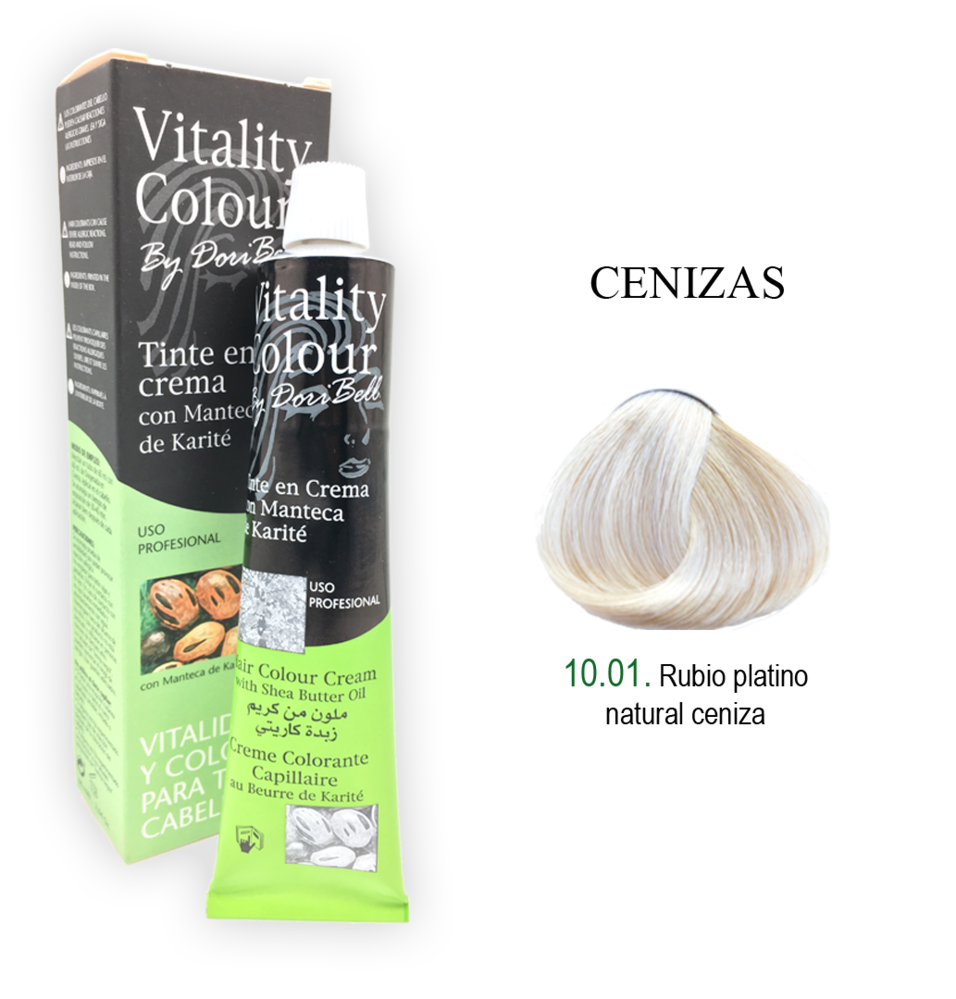 TEINTE 9.1 Très blond cendré très clair VITALITÉ ET COULEUR POUR LES CHEVEUX · FIXATION ET COUVERTURE TOTALE · DOUCEUR ET BRILLANCE · RÉSULTATS LUMINEUX · CHEVEUX SAINS Coloration permanente ou oxydative Vitality Colour, permettant de modifier totalement la couleur des cheveux, que ce soit pour les foncer ou les éclaircir radicalement. Permet de couvrir 100 % des cheveux gris, avec une couleur qui ne s'estompe pas au lavage, l'effet étant définitif jusqu'à la repousse des cheveux. Contient du beurre de karité, aux propriétés adoucissantes et régénérantes, aidant à contrer les effets du peroxyde d'hydrogène. Les cheveux sont simultanément décolorés et colorés, les pigments naturels étant partiellement dissous tandis que les nouveaux pigments se fixent dans le cortex capillaire par un processus d'oxydation. UTILISATION • Pour couvrir parfaitement les cheveux gris. • Pour transformer la couleur naturelle des cheveux, afin de les foncer, les éclaircir ou changer radicalement de teinte. À réappliquer toutes les 4 à 5 semaines environ.