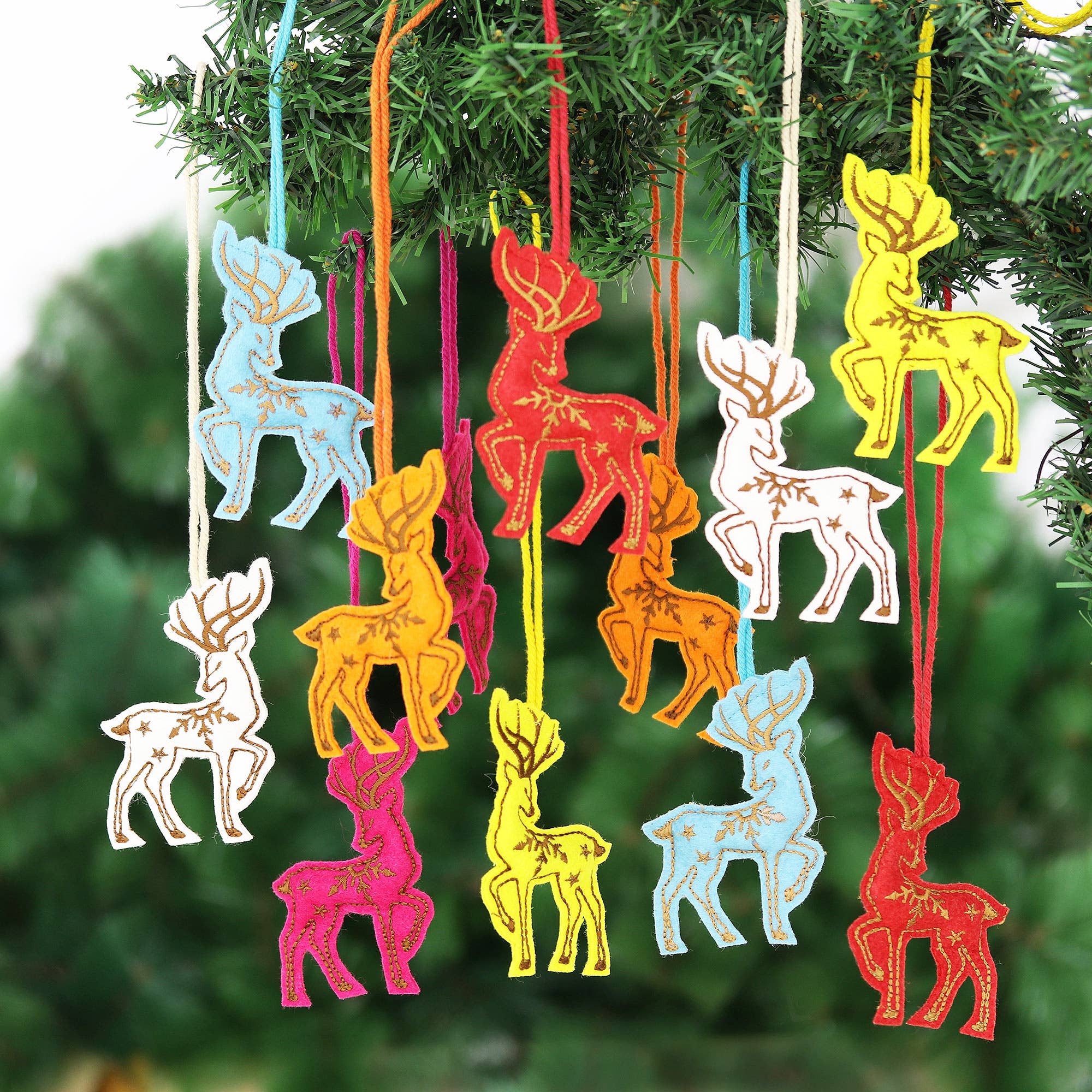 Cinq chats sont prêts à fêter les fêtes. Mohammad Hussain Baba représente un chat tigré gris, un calicot, un chat roux roux, un chaton jaune et un chat smoking. Les charmants félins prennent vie sous forme d'ornements en papier mâché fabriqués à la main.