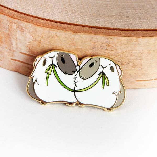 Adorable petit cochon trottinant attrapant sa friandise à emporter ! Le pin mesure environ 1,625 x 0,75 pouces, est moulé en métal doré, avec deux fermoirs en caoutchouc à l'arrière.
