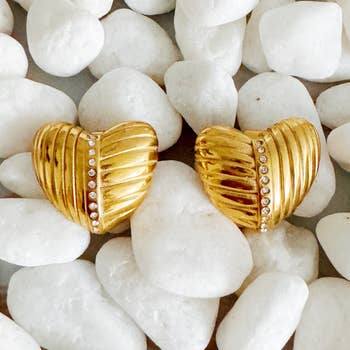 Boucles d'oreilles dorées Elowen Heart Button Statement en vente B2B