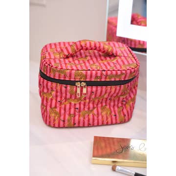 Il s'agit de la boîte de beauté idéale pour tous vos besoins de beauté, que ce soit à la maison ou en voyage. Sa taille vous permet de ranger plusieurs de vos produits de beauté et articles de toilette dans la même boîte. La doublure rayée emblématique de Bag-all est imperméable, ce qui facilite l'essuyage des produits cosmétiques ou liquides renversés. La boîte de beauté est adaptée pour ranger tout ce que votre cœur désire, comme des articles de toilette, des shampooings, des vernis à ongles, du maquillage, des médicaments. Apportez votre propre coffret beauté en y ajoutant un monogramme élégant. L'étui imprimé MY VANITY CASE est en couleur à base d'eau respectueuse de l'environnement. Le ruban gros-grain est fabriqué à partir de matériaux recyclés et peut être retiré. Pour en savoir plus sur ce produit, consultez notre journal. La boîte est disponible en deux tailles. Noeud blanc cassé inclus sur le dessus. Rubans en gros-grain fabriqués à partir de bouteilles en PET 100% recyclées. Poignée sur le dessus du couvercle. Dimensions : 18 cm x 30 cm x 21 cm. Les instructions d'entretien peuvent être trouvées sur notre page « Comment faire ». Les étuis sont livrés en paquets de 5. Chaque étui mesure 18 Le PDSF par unité est de 42 Bonne organisation !