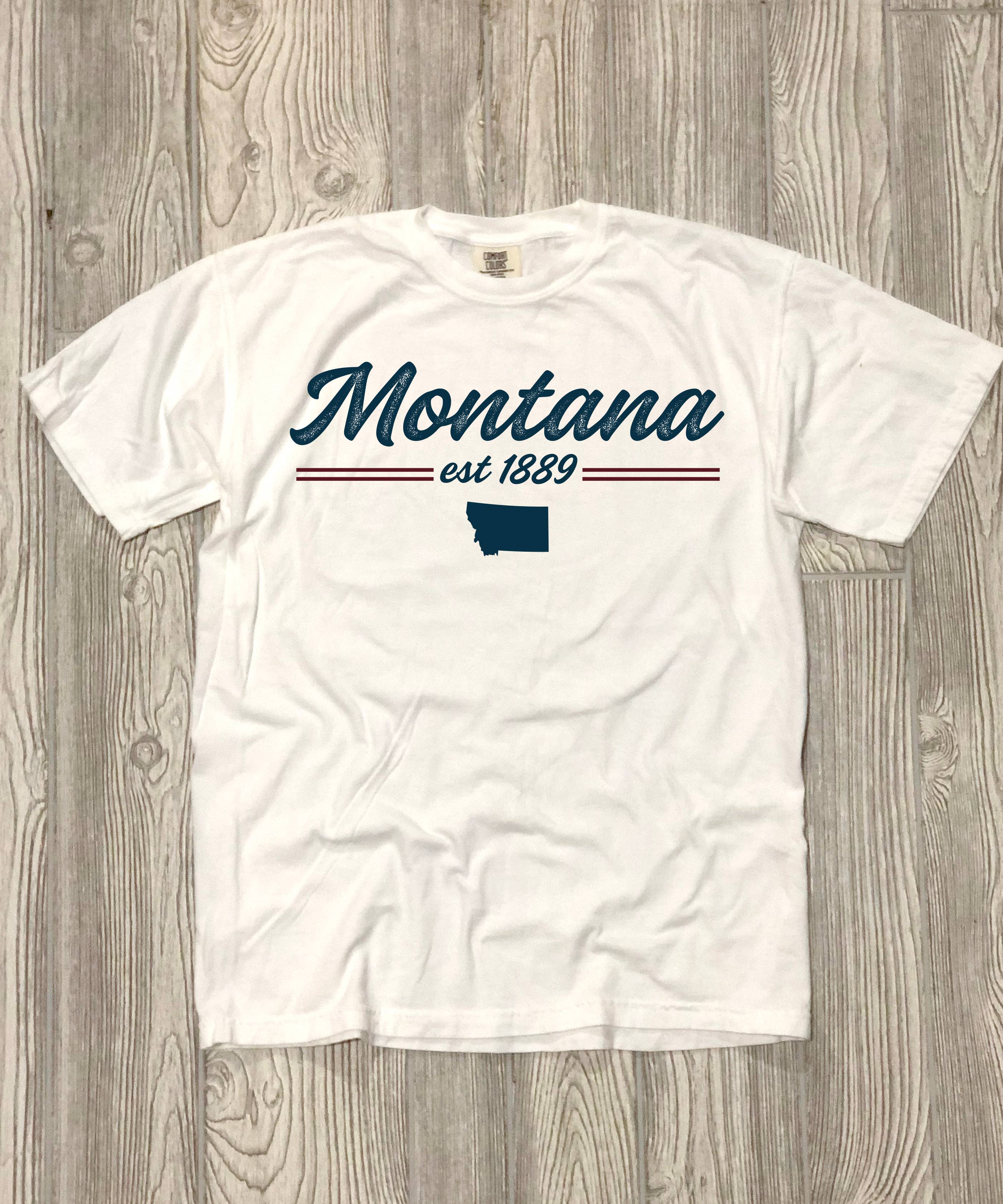Notre design Retro Mountain est personnalisable en fonction de votre emplacement. Lorsque le Montana est sur le t-shirt, votre emplacement peut être imprimé. Veuillez saisir votre personnalisation dans la zone indiquée. Les chemises ne peuvent pas être imprimées sans ces informations. Les couleurs des t-shirts sur la photo sont Charcoal Heather et White.