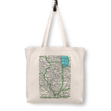 Un cabas en hommage à la ville dans laquelle je vis et à certaines de mes attractions préférées. Cette sérigraphie montre des habitants de Chicago qui profitent entre autres du Bean, de l'Art Institute, de Quimbys, du Rainbo Club et du Humboldt Park ! Encre noire avec détails bleu clair sur un sac cabas naturel.