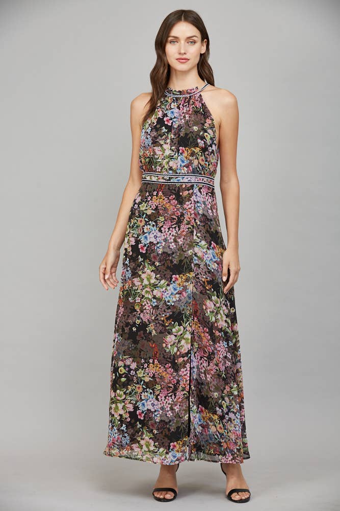 Robe entièrement en dentelle doublée avec imprimé et doublure intérieure du débardeur