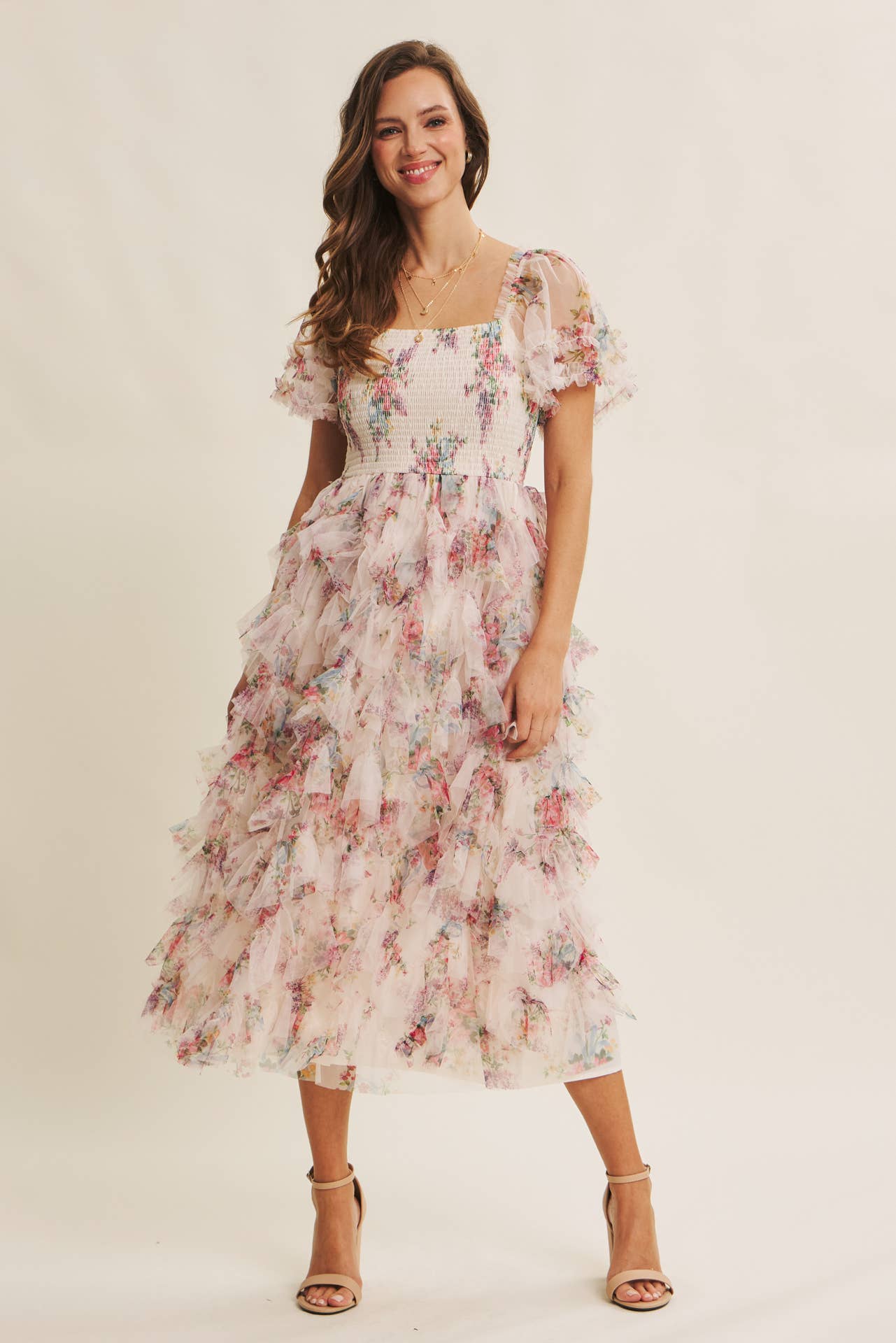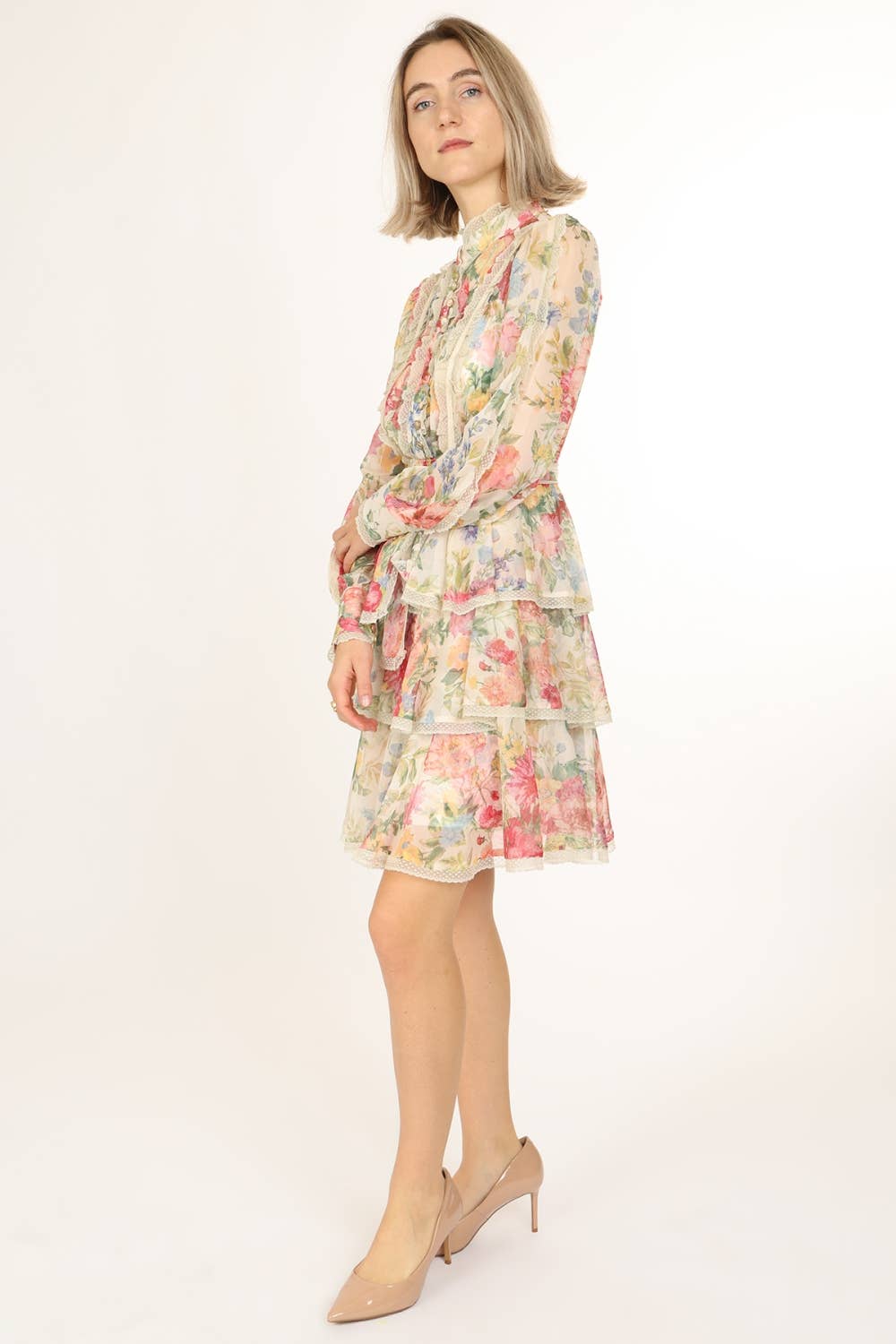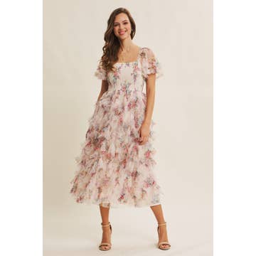 Robe midi en dentelle sans manches fantaisie avec combinaison amovible - 46-4609 BG/J FL en vente B2B